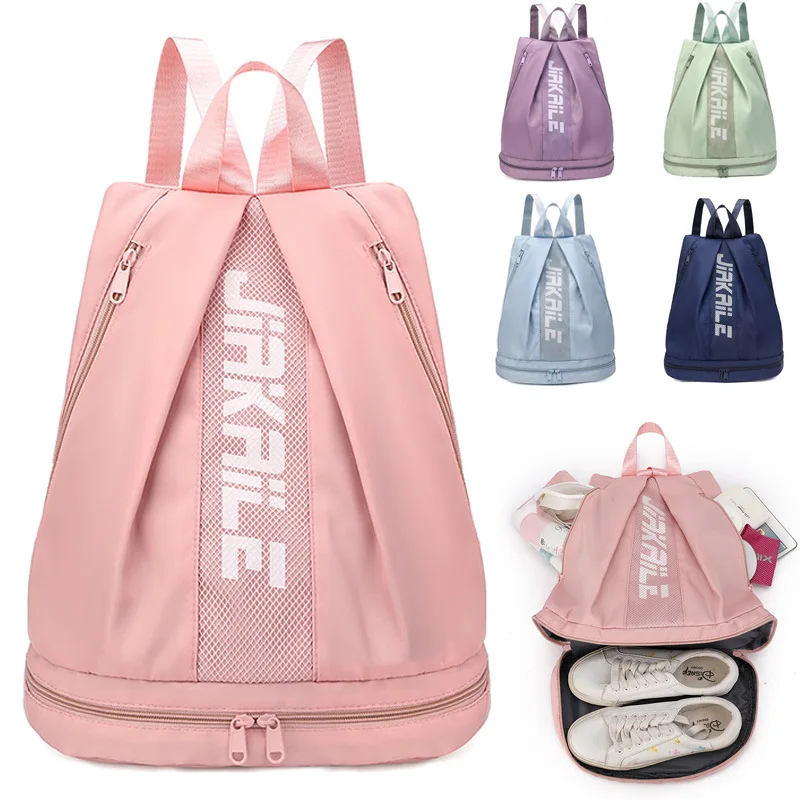 Sports backpack, lightweight travel bag, independent shoe compartment, multiple zippers, large storage capacity, letter printed