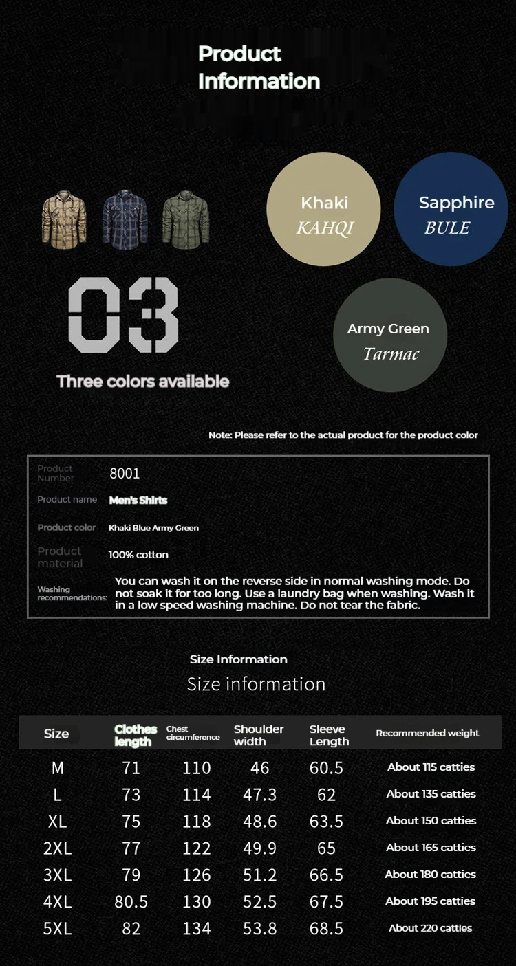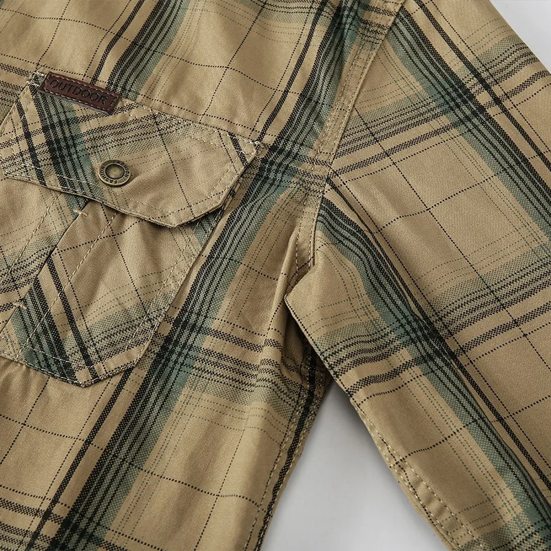 Spring and Autumn New Pure Cotton Plaid Long Sleeve Military Quick-drying Versatile Shirt Men's Casual Tactical Cargo Shirt