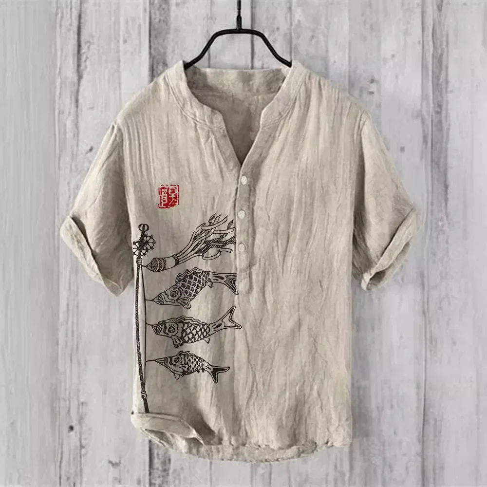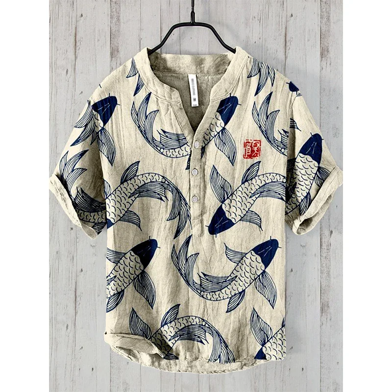 Spring and summer men's and women's shirts independent station casual fish pattern Hawaiian style printed shirts men's tops