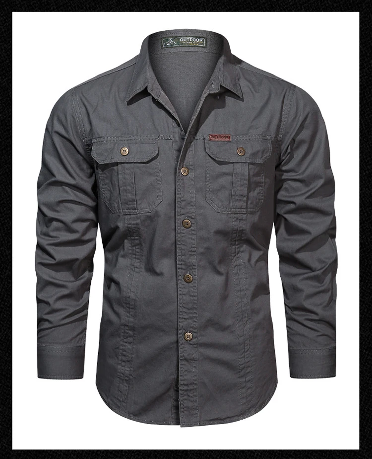 Spring Autumn Fashion Men's 100% Cotton Long-Sleeved Solid Color Premium Casual Shirt Multi Pockets 6XL Large Size Cargo Jackets LFFMHMT