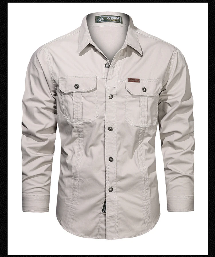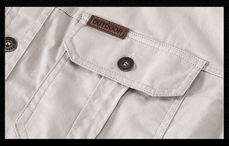 Spring Autumn Fashion Men's 100% Cotton Long-Sleeved Solid Color Premium Casual Shirt Multi Pockets 6XL Large Size Cargo Jackets