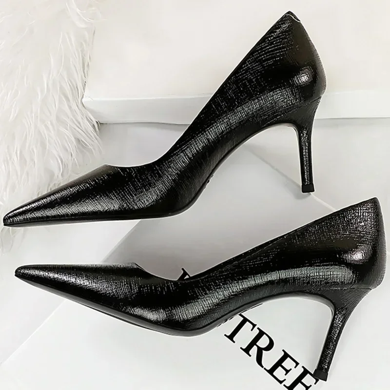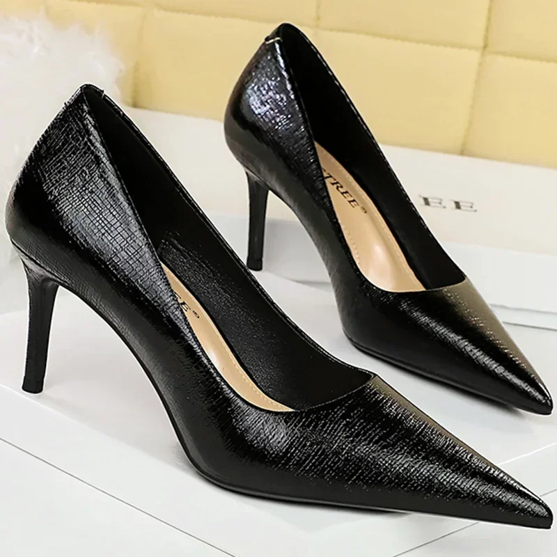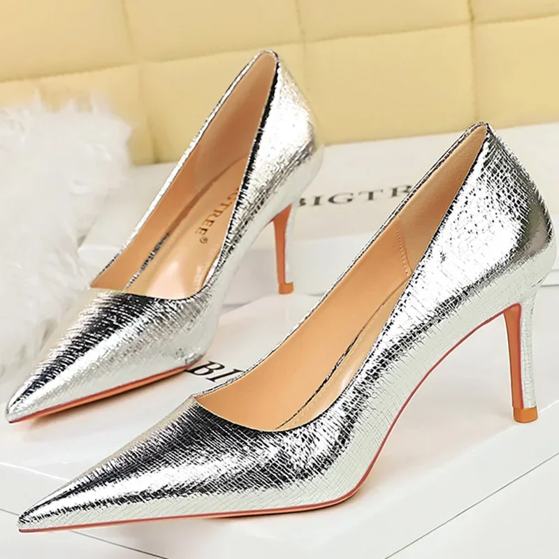Spring Autumn New Women 7cm High Heels Fashion Retro Holiday Party Pumps Lady Gold Silver Daily Office Pointed Toe Low Heels