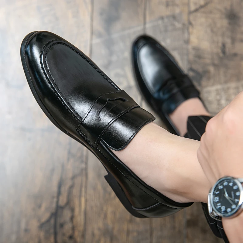 Spring Autumn Prom Evening Long Men's Casual Leather Loafers Male Slip on Flats Shoes Male Brogue Retro Upscale Comfy Shoes