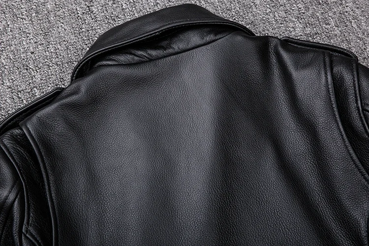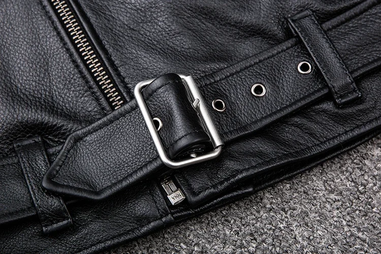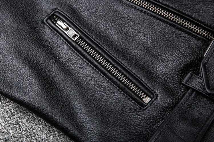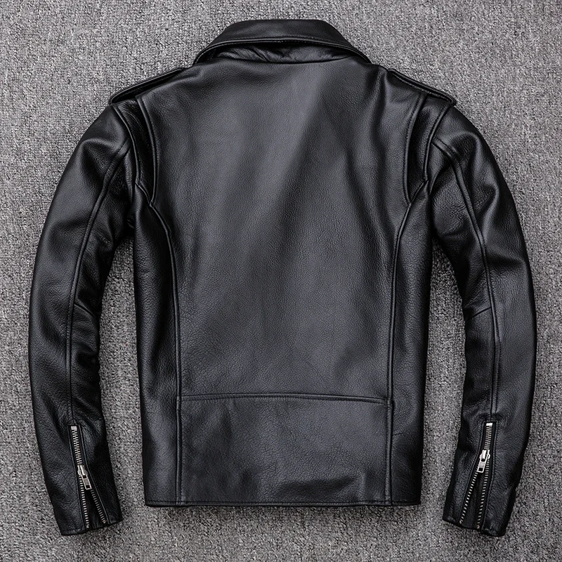 Spring Classical Motorcycle oblique zipper Jackets Men Leather Jacket Natural Calf Skin Thick Slim Cowhide Moto Jacket man