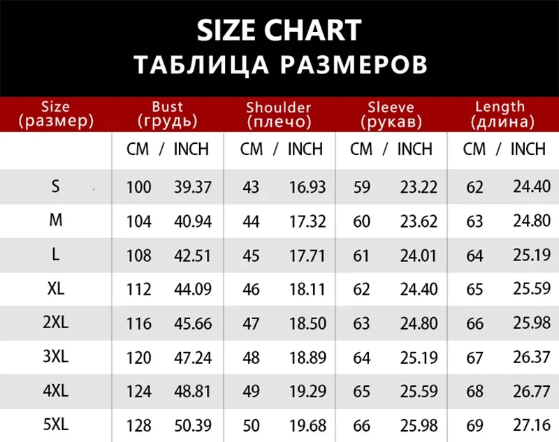 •All measurements above are actual garment measurements. For a good fit,please add 8cm~10cm to your body chest measurement when selecting your size from the table above.