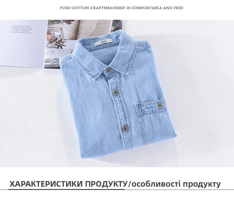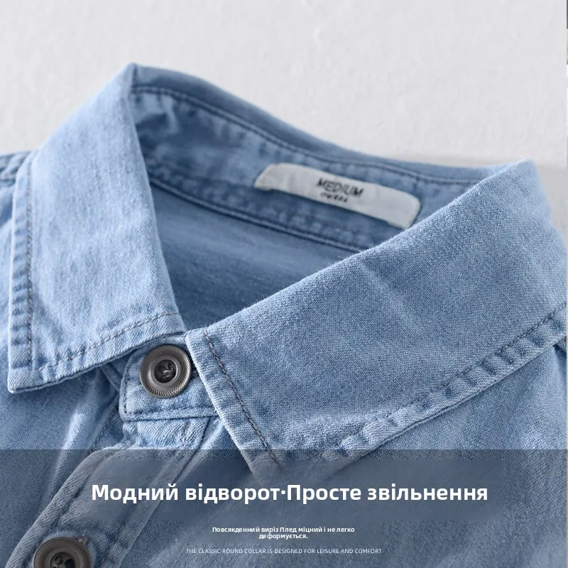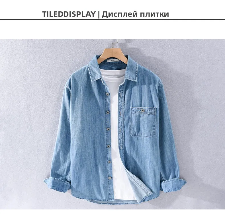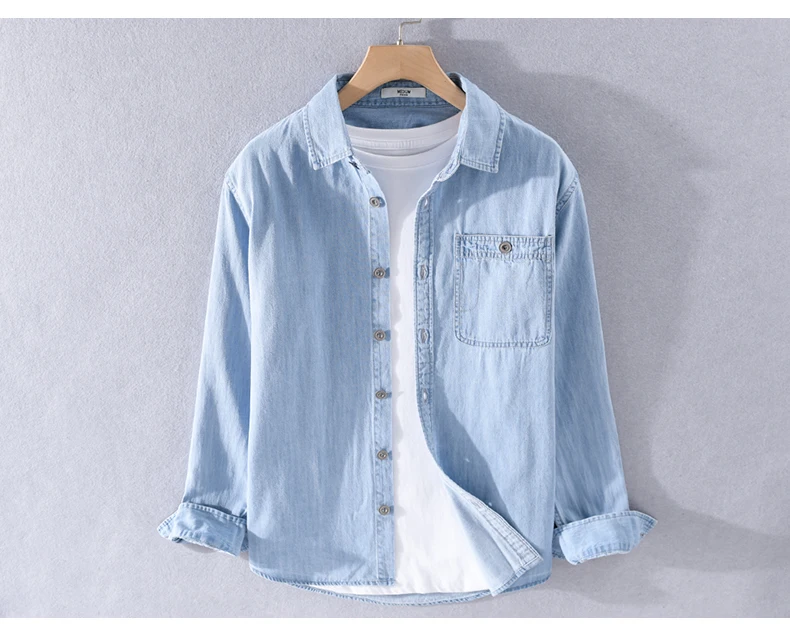 This men's long-sleeve denim shirt features a classic Japanese style, offering a unique and fashionable look.