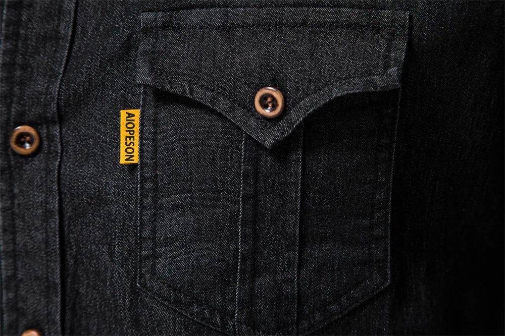 Spring Long Sleeve Men's Denim Shirt High Quality Cotton Elastic Casual Slim Fit Streetwear Clothing Cowboy Shirts Men Black