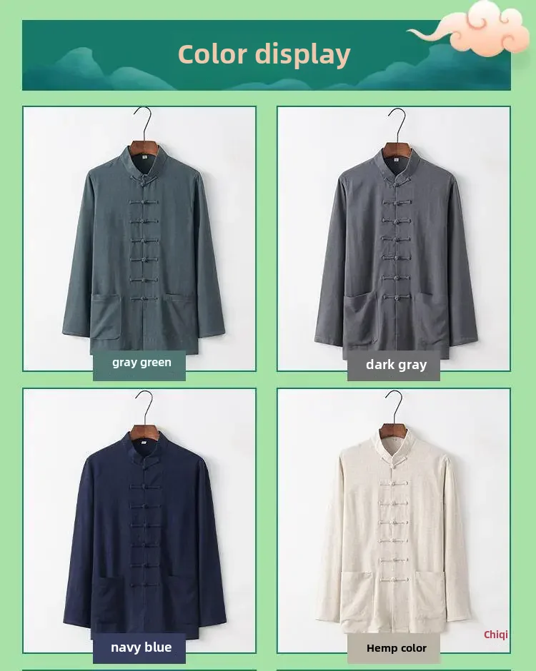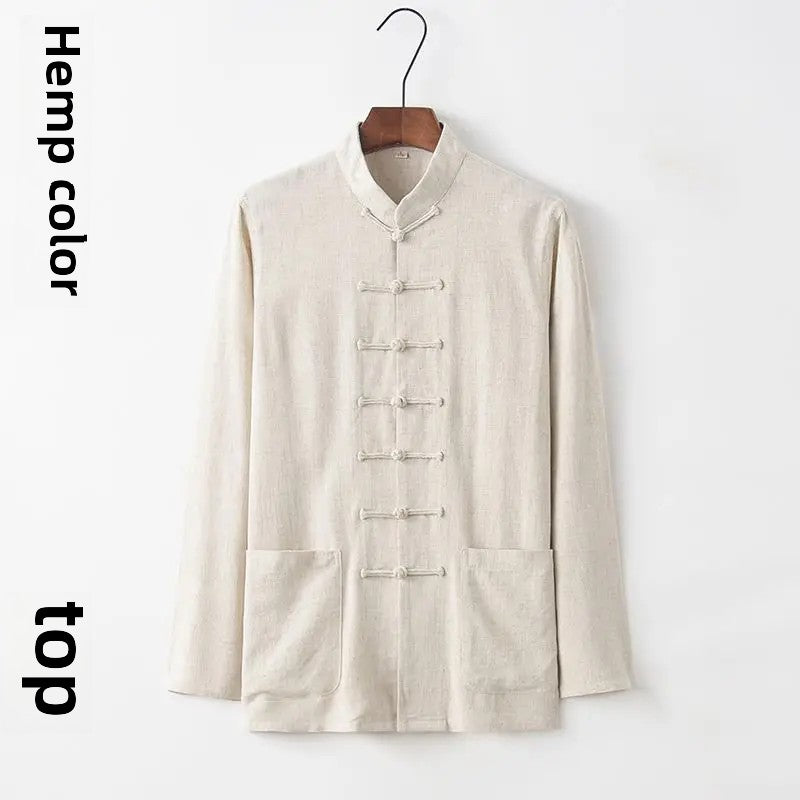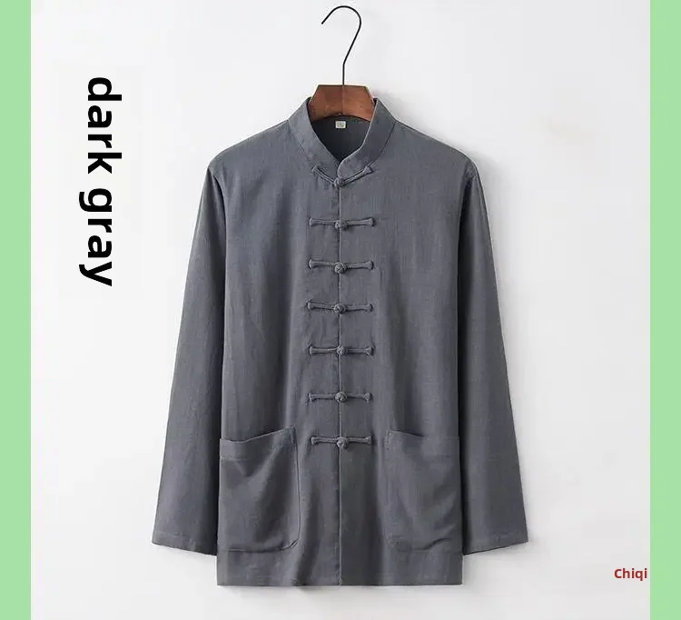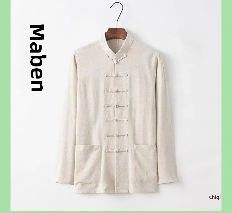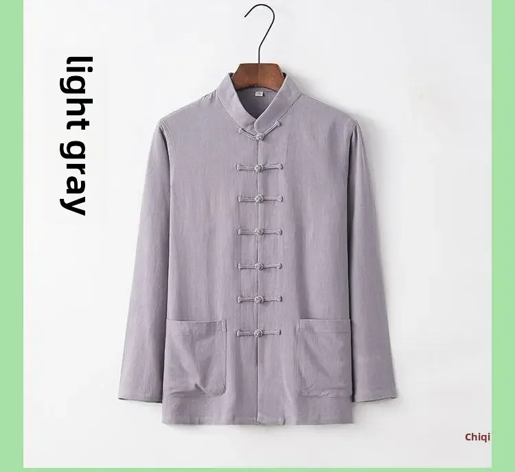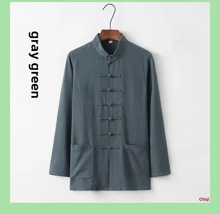 Spring Summer Long Sleeve Thin Men's Shirt Tang Suit Bamboo Cotton Linen Casual Vintage Chinese Style Kung Fu Tai Chi Tea Shirt