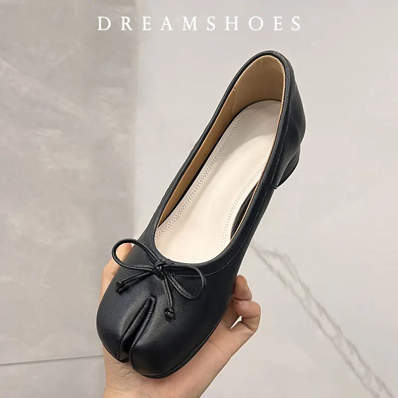 Spring Women Flat Split Toe Shoes with Bow Soft Leather Bow Tie Front Shallow Slip On Girls Tabi Shoes Flats Ballet Shoes