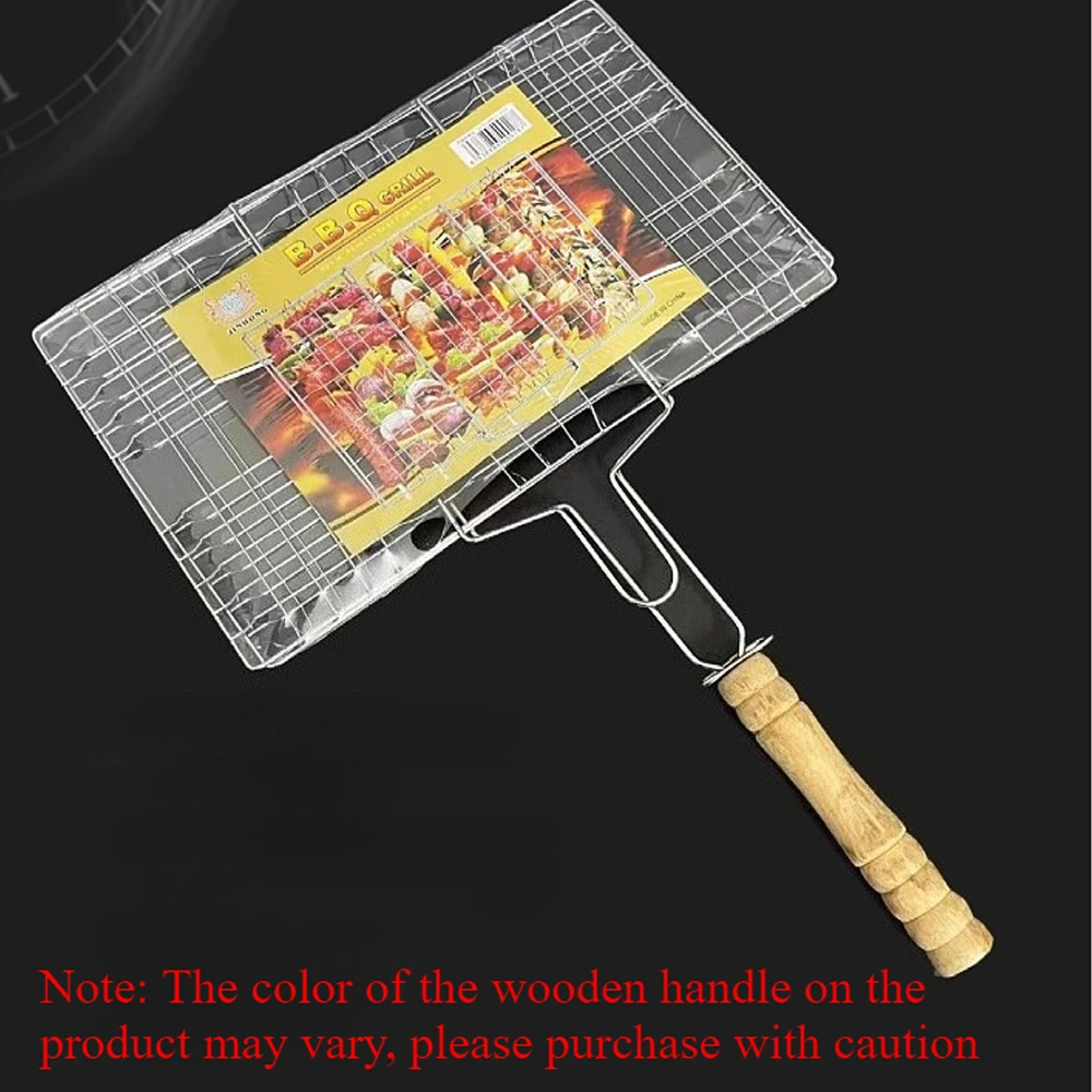 Stainless Steel Barbecue Rack Foldable Portable Long Handle Barbecue Basket Large Capacity Grilling Net Barbecue Tools
