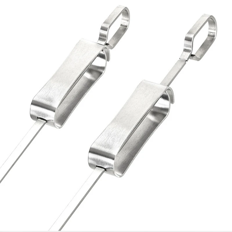 Upgrade your BBQ game with our professional-grade stainless steel skewers, designed for serious grill masters and outdoor cooking enthusiasts. These heavy-duty metal skewers feature a smart flat blade design that keeps food securely in place - no more spinning chicken wings or sliding kebabs!