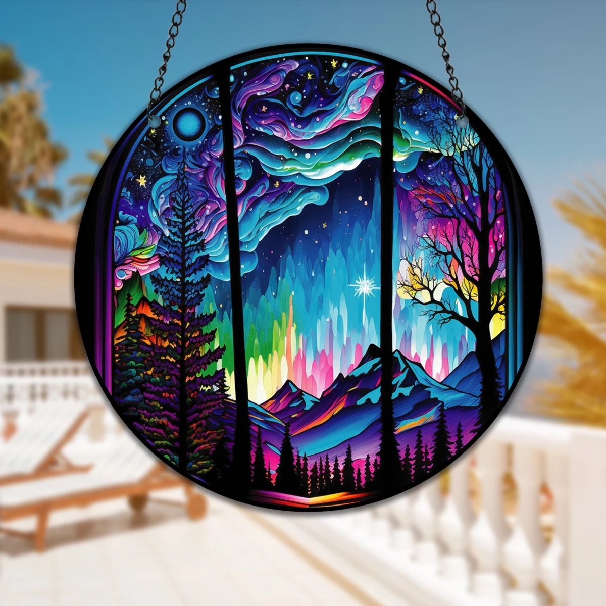 Starry Night Sky Round Acrylic Painted Home Living Room Window Wall Hanging Craft Party Car Pendant Retro Decoration Accessory