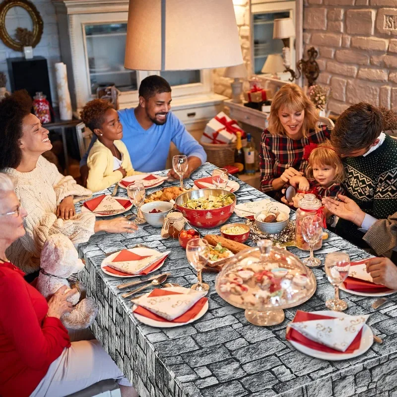 What you will get: it comes with cobblestone plastic tablecloth, it measures 274 x 137 cm / 8.99 x 4.49 ft, which is large enough for most tables and can be applied together for parties with multiple people