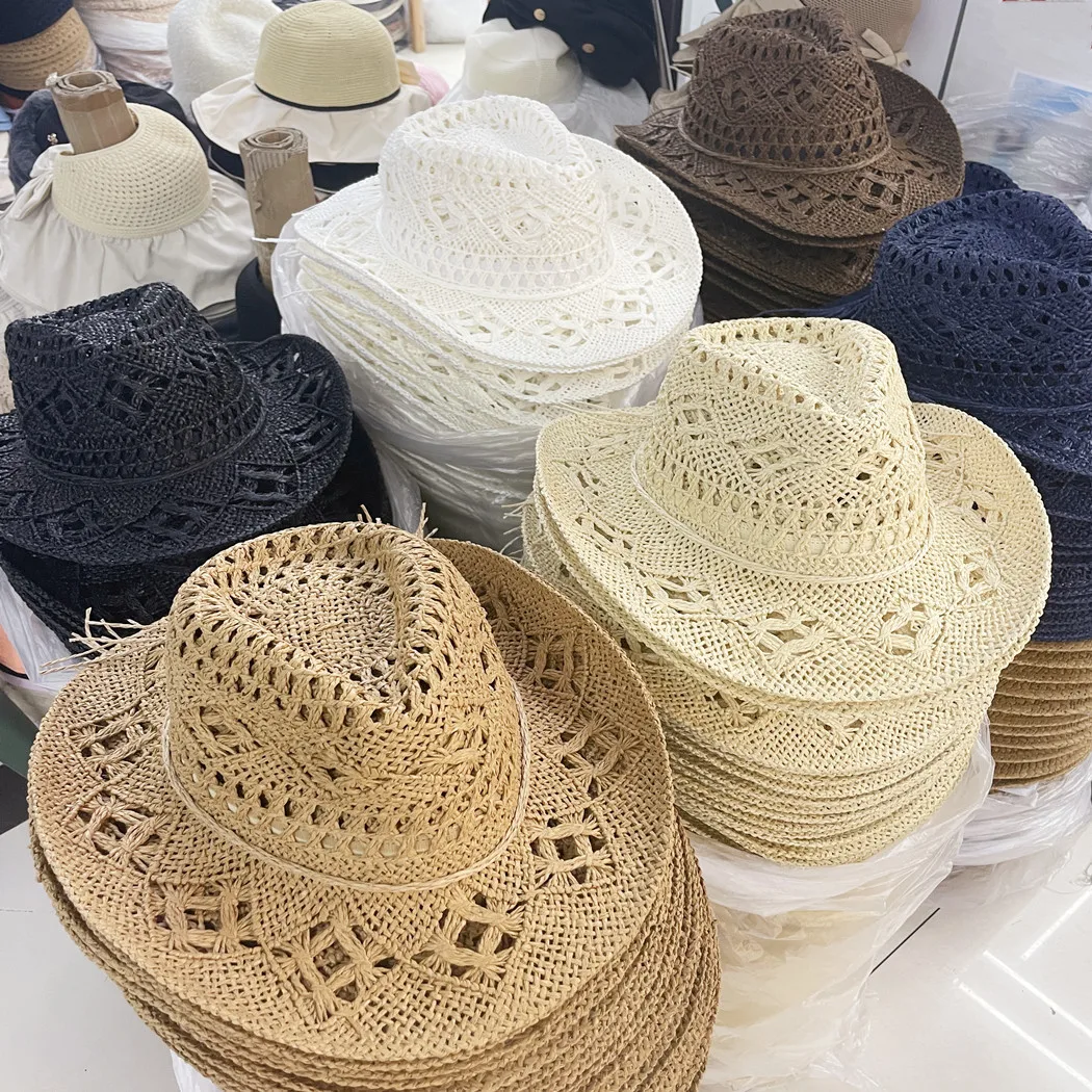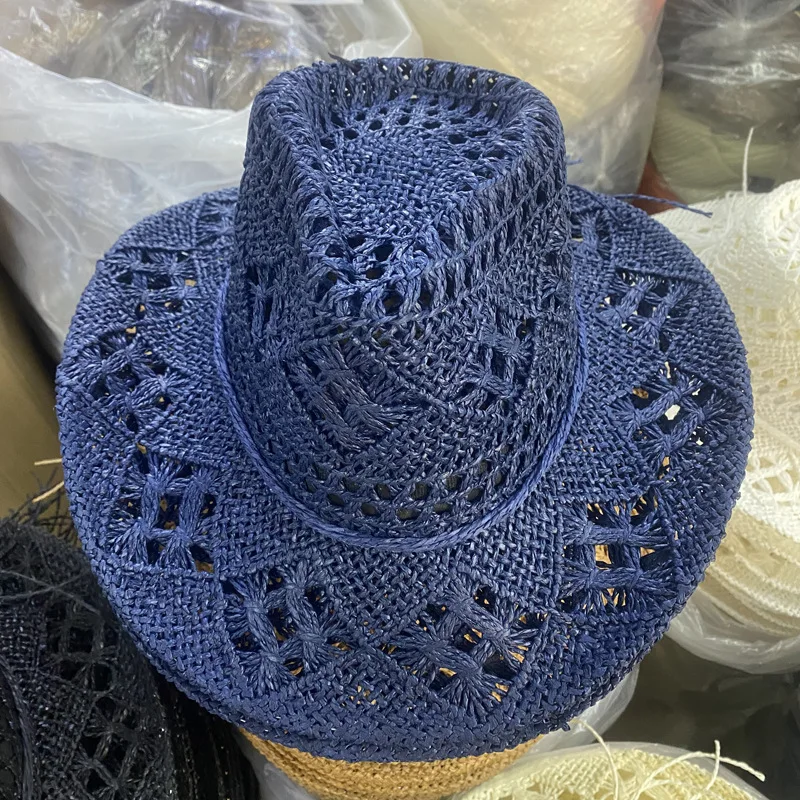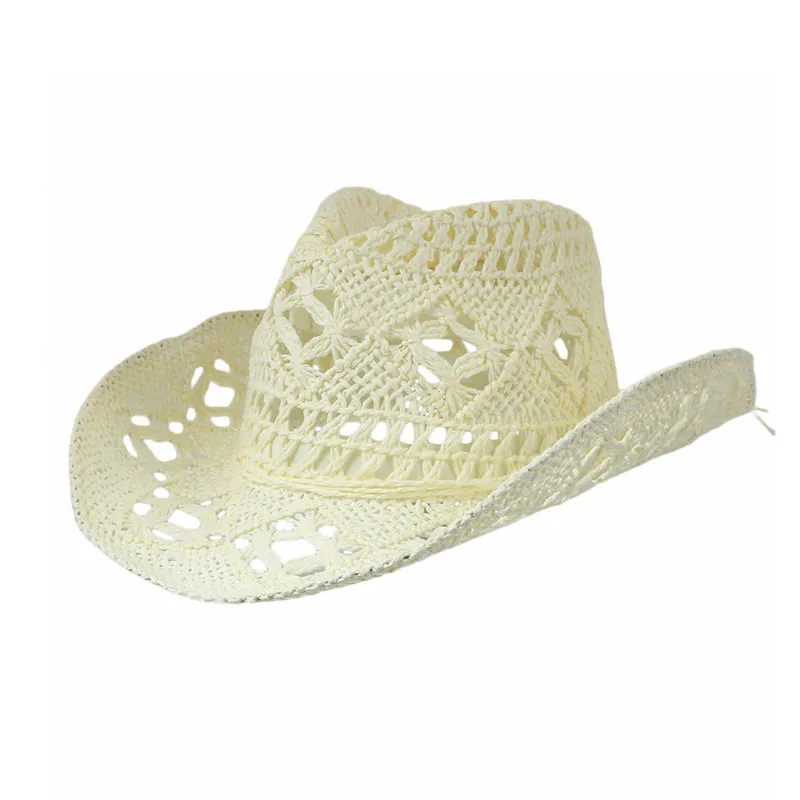 Straw Western Cowboy Hoed Hand Made Beach Vilt Zonnehoeden Party Cap Voor Man Vrouw Curling Rand Cap Zon Bescherming Unisex hat
