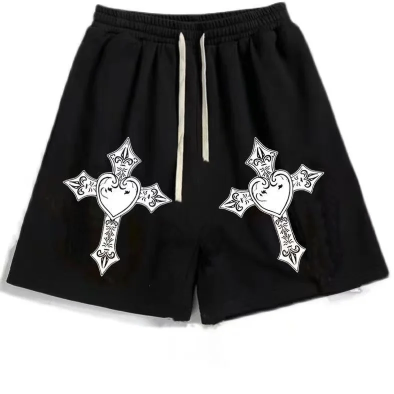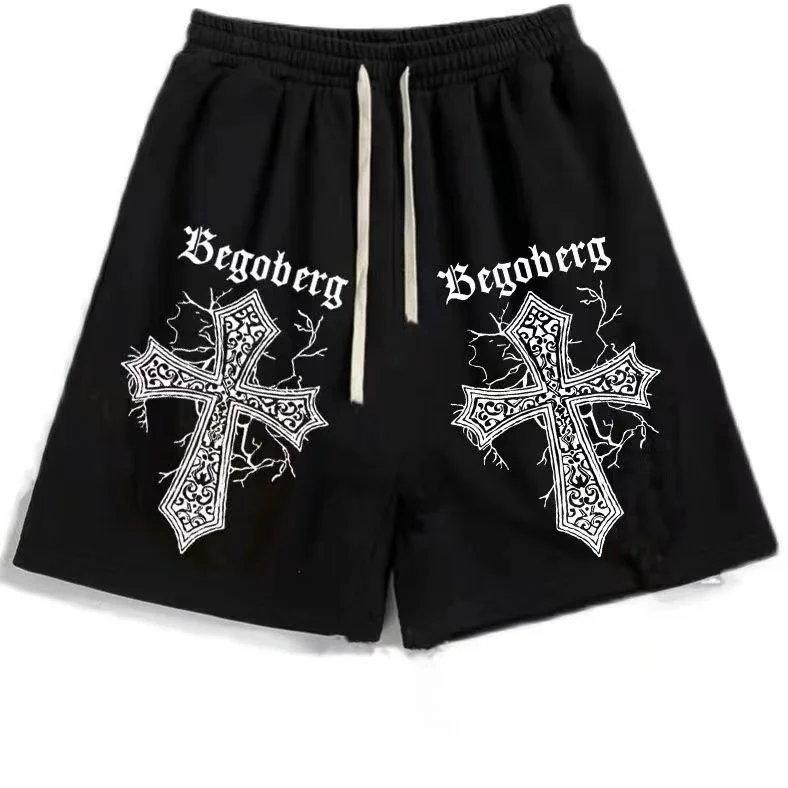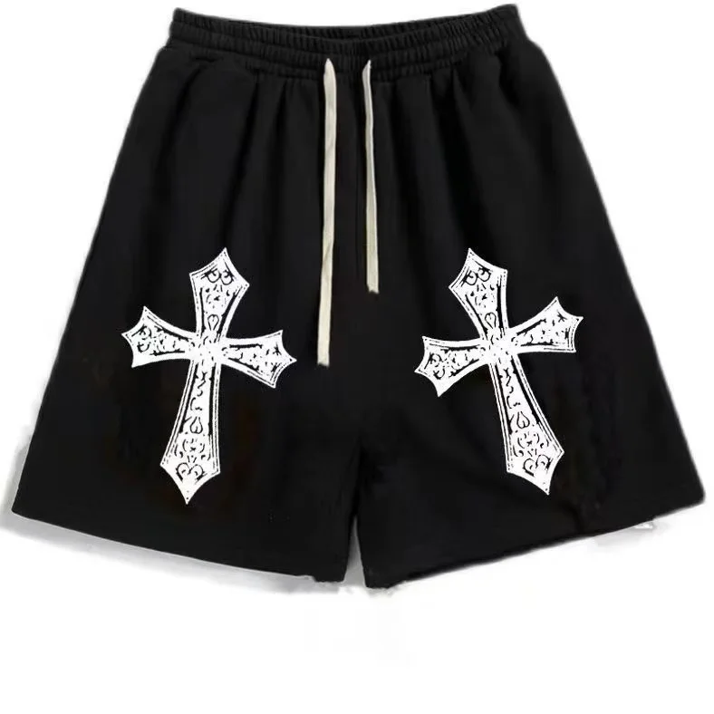 Street Hip-hop Cross Design Pattern Loose Casual Shorts Men American Y2K Harajuku Oversized Fashion Versatile Mid-pants Women