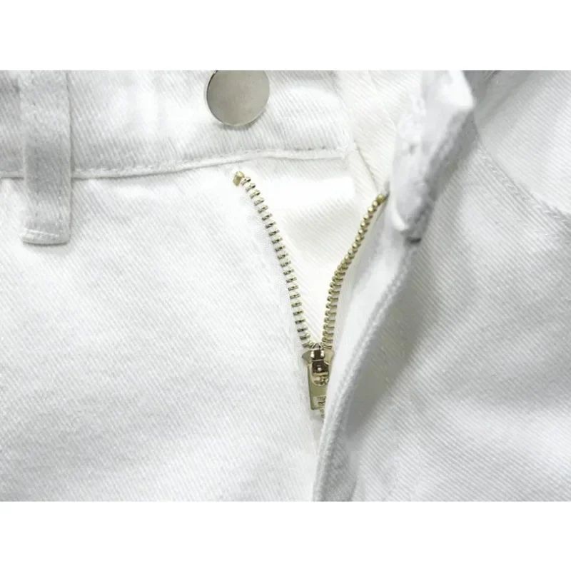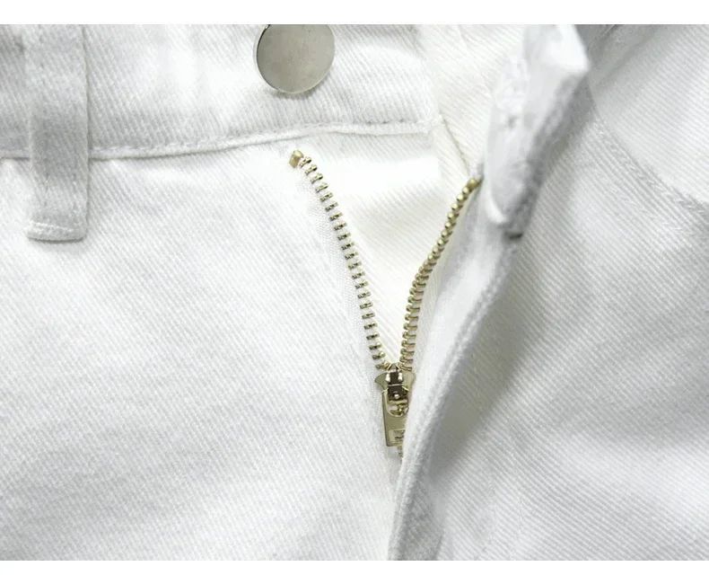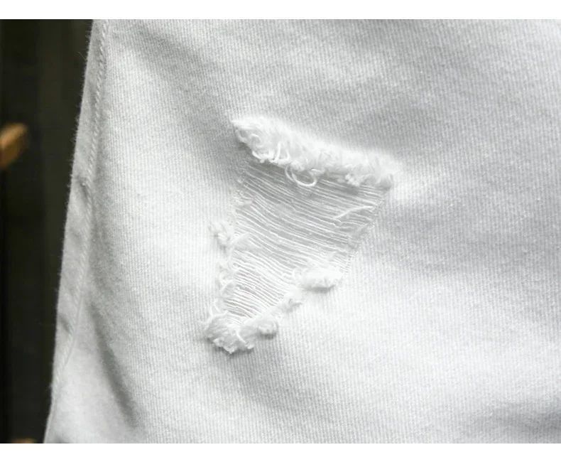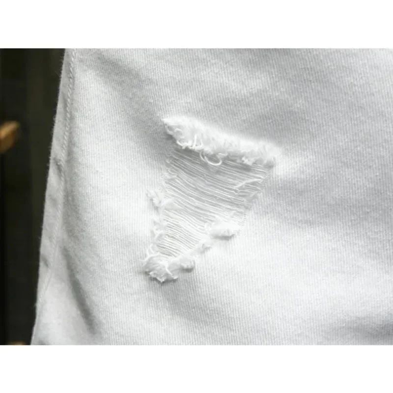 Streetwear Ripped White Denim Shorts Men New Fashion Knee Length Jeans Simple Casual Slim Hole Short Pants Male