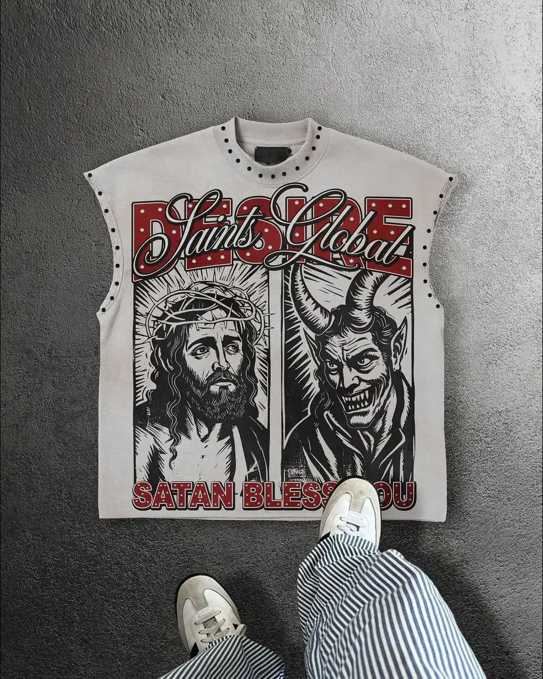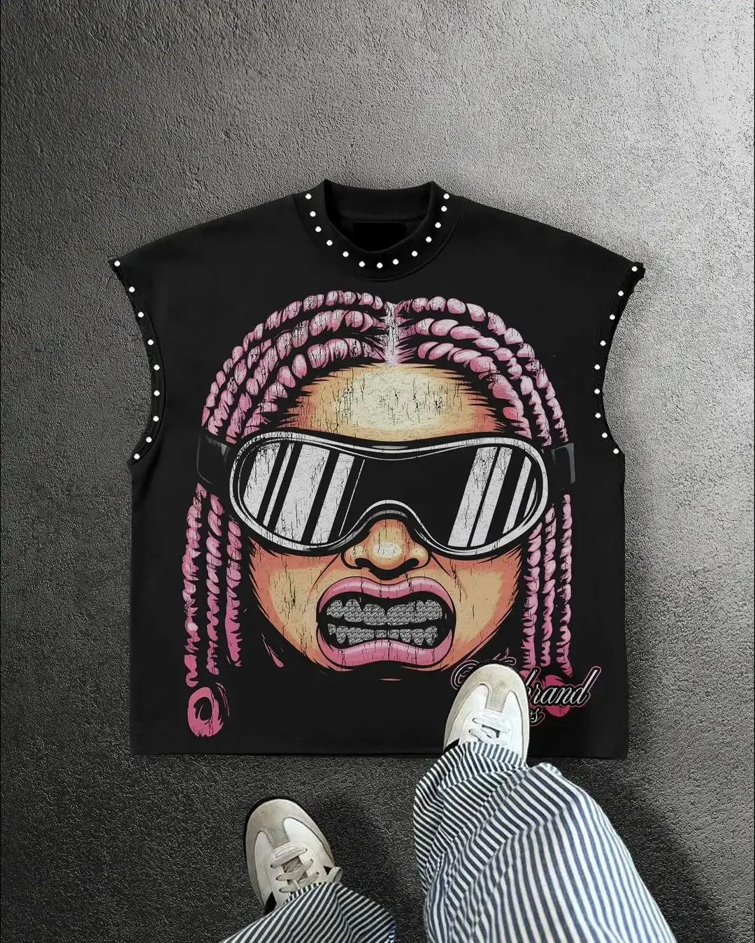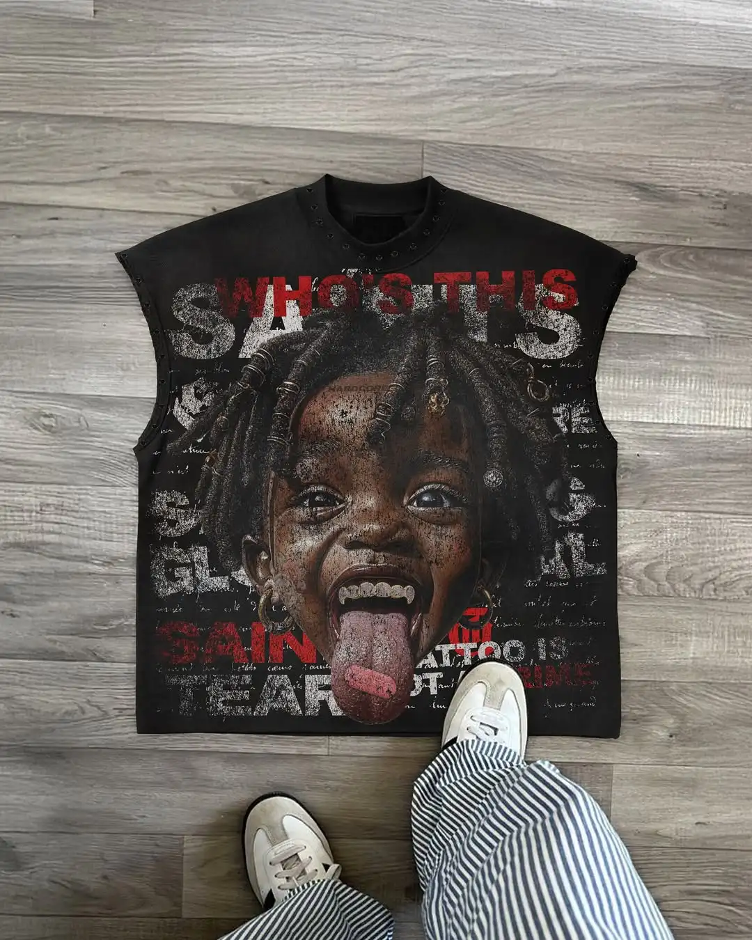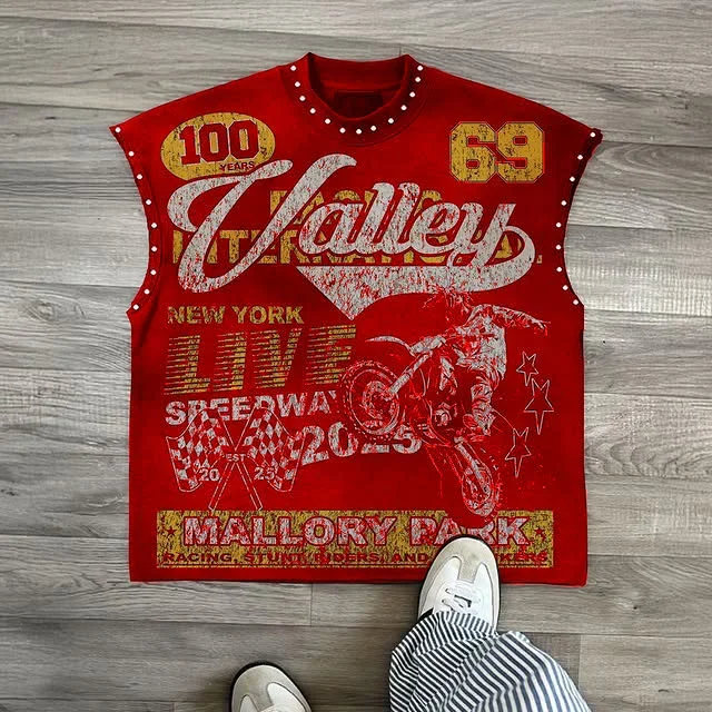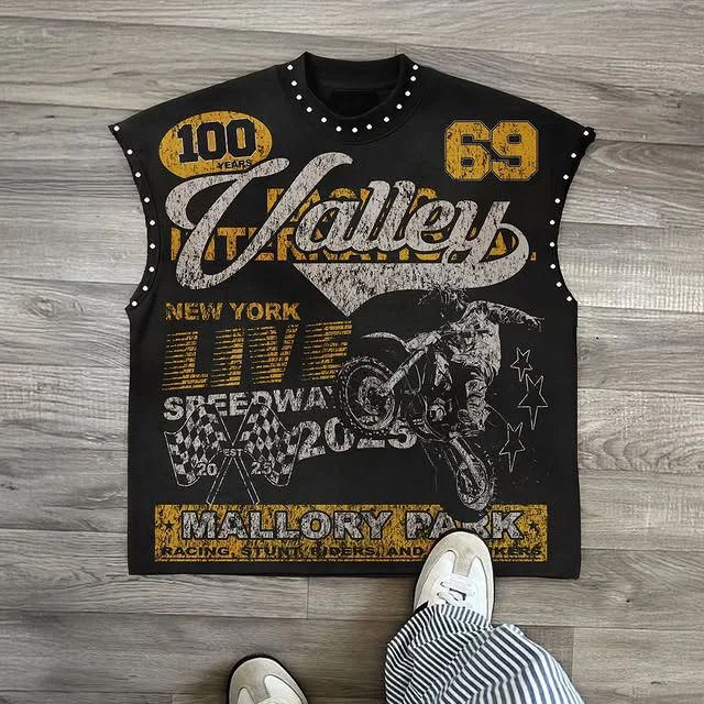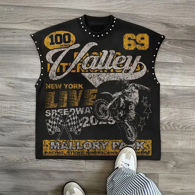 Streetwear Y2K Fashion Fashion Retro Sleeveless Oversized T Shirt Gothic Classic Top Hip Hop Print Extra Large Round Neck Vest