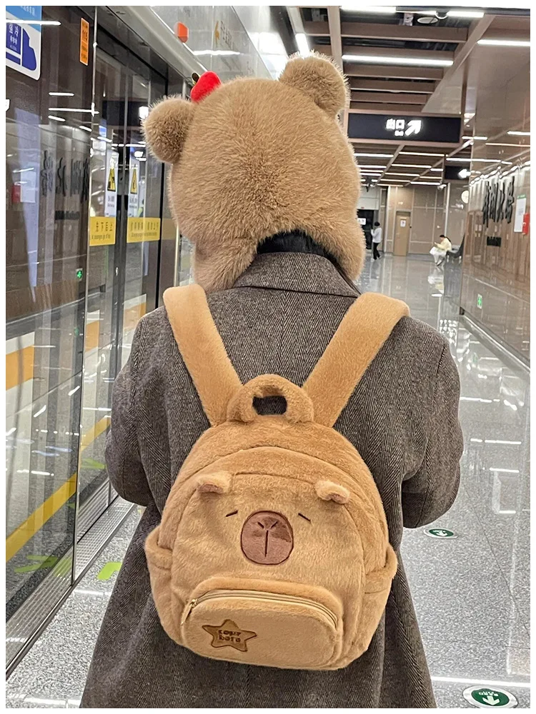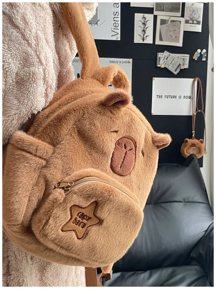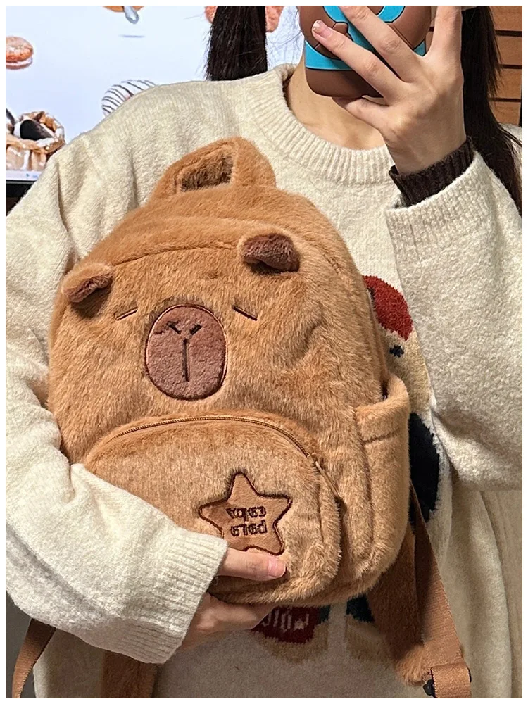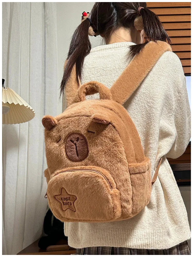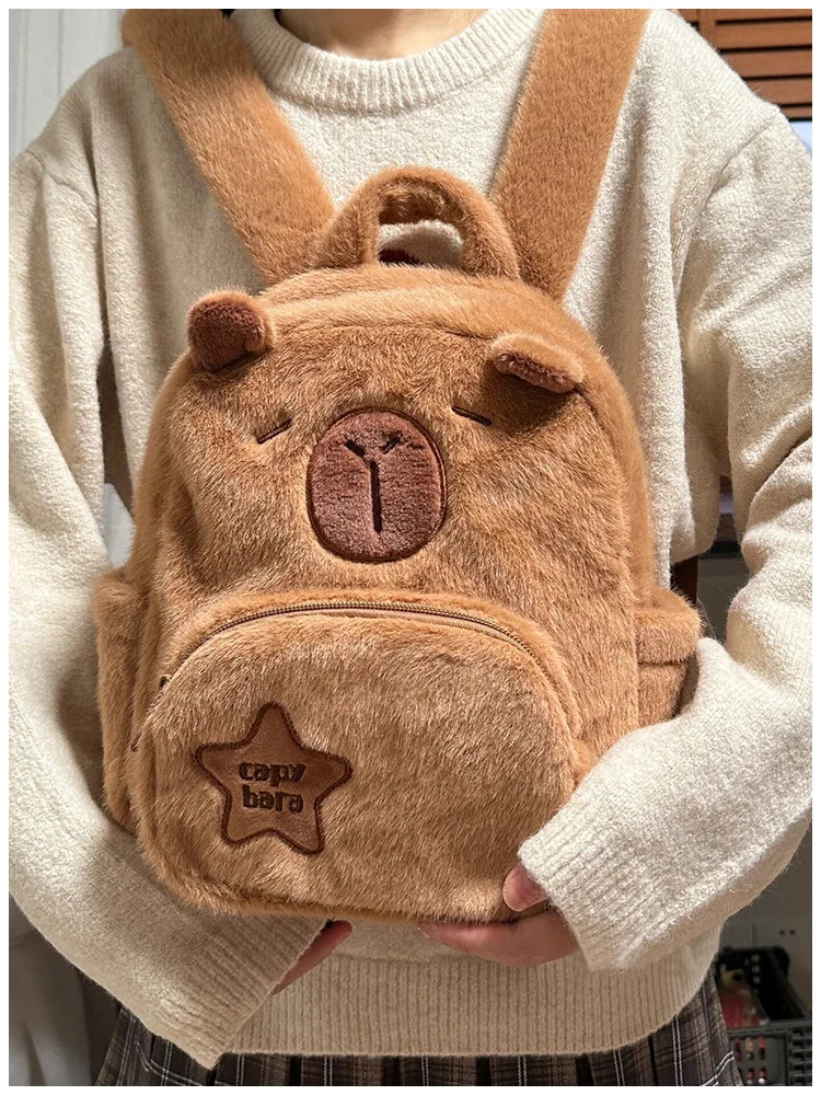 Student School Bag Capibala Plush Capybara Bag Casual All-match Fur Bag Large Capacity Backpack School Bags Mochila bolsa 2025