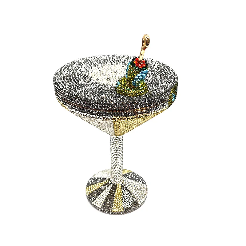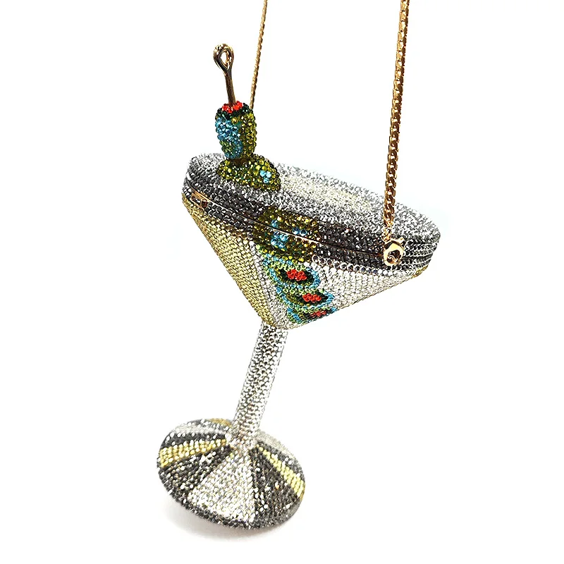 Stunning women rhinestone martini purse bag drink Luxury crystal Olive cocktail clutch bag