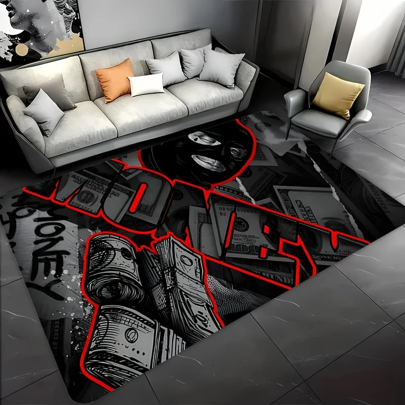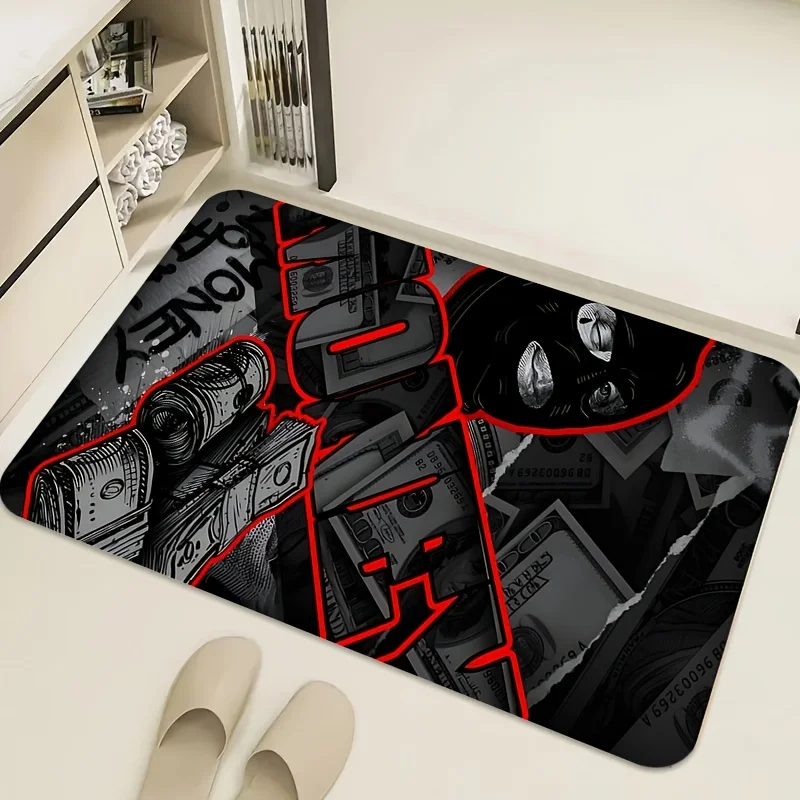 Stylish Money Design Doormat - Red and Black Pattern for a Modern Home Entrance, Perfect for Adding an Edgy Touch to Your Decor
