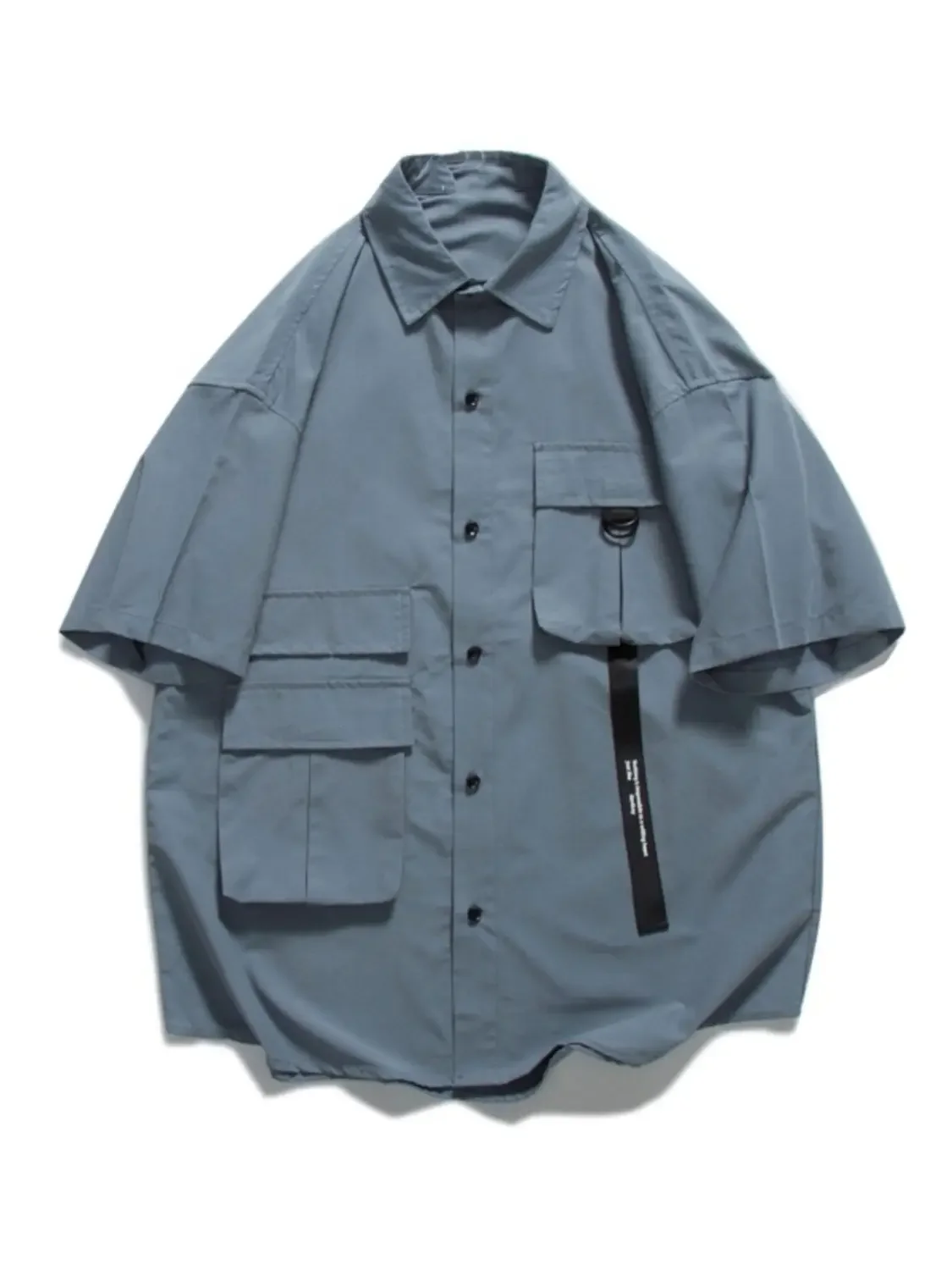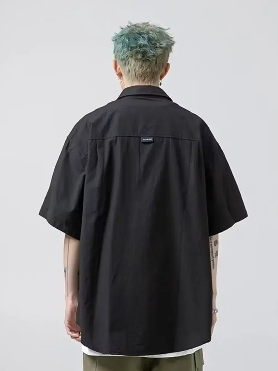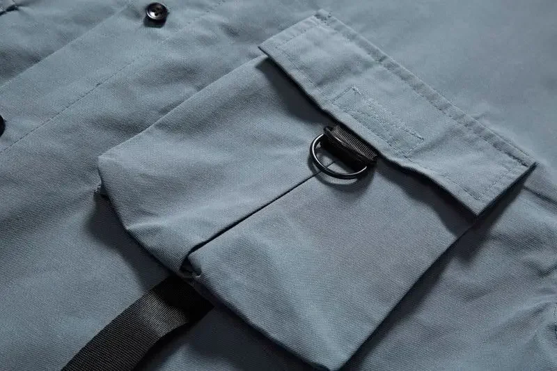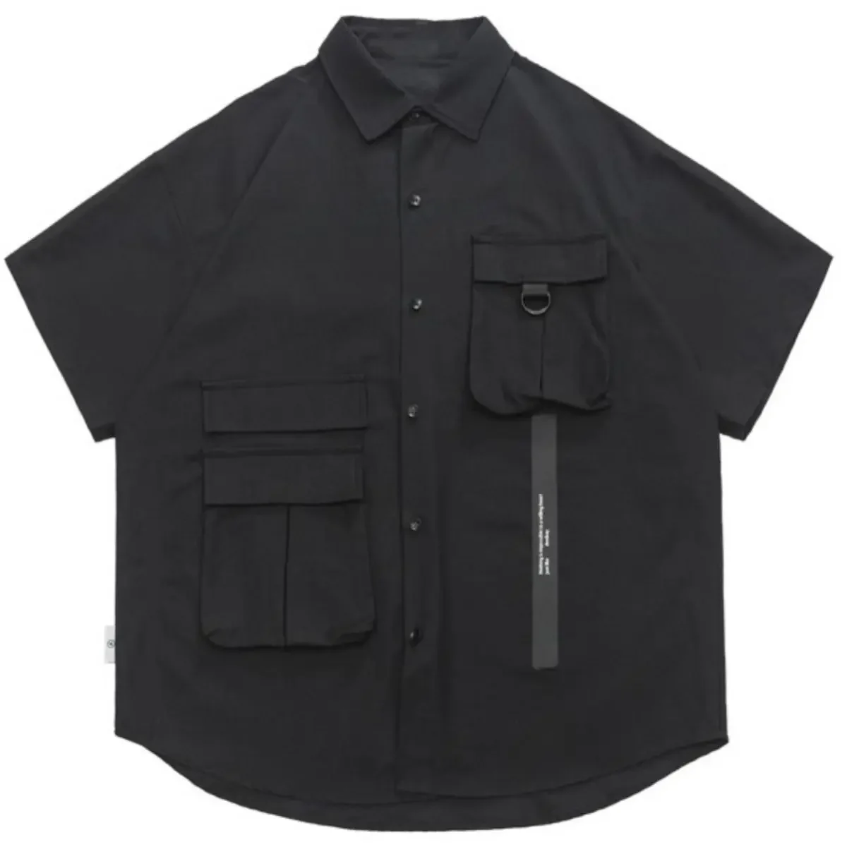 Stylish Y2k Men's Shirts Summer Korean Cargo Shirts for Men Black Multi-Pocket Hip Hop Men Clothing Punk Gothic Streetwear