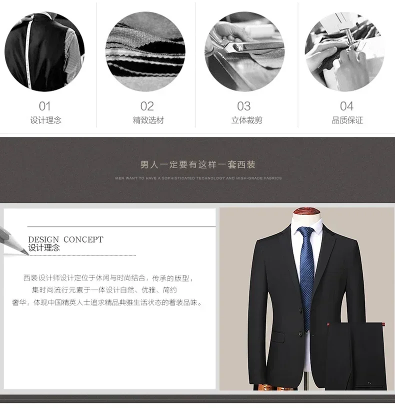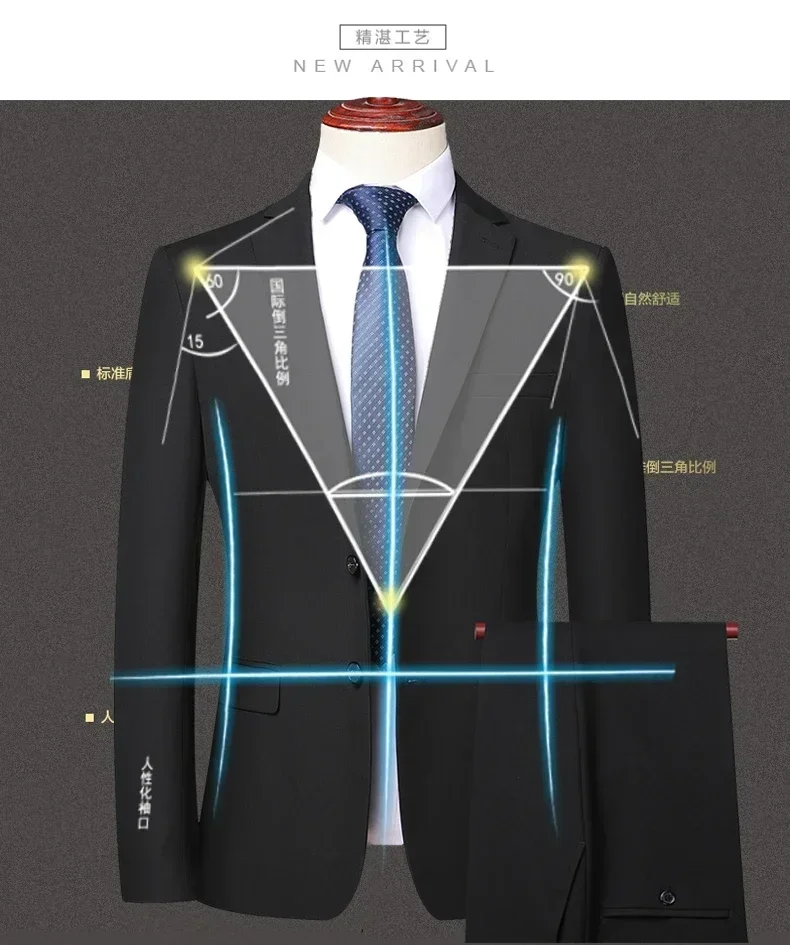 Suit 8XL (Blazer + Trousers) Men Korean Version of The Youth Elegant Fashion Simple Casual Gentleman Best Man Suit 2 Piece Suit