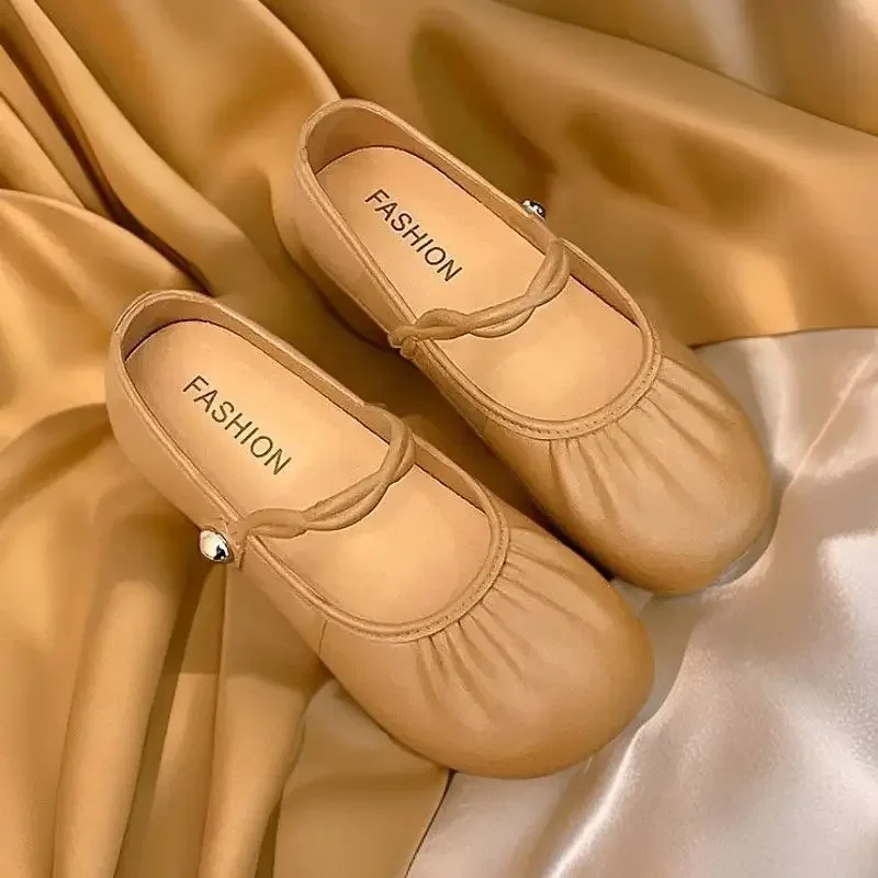Summer 2025 Women's Flat Mary Jane Sandals Folded Beans Style Versatile Flats Fashionable French Bean Trend Ankle Cover PVC Mate