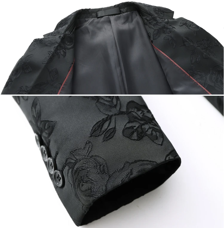 Summer and Autumn New Men Rose Suit Jacket Black White Fashion Male Business Wedding Party Dress Blazer Coat Large Size 6XL