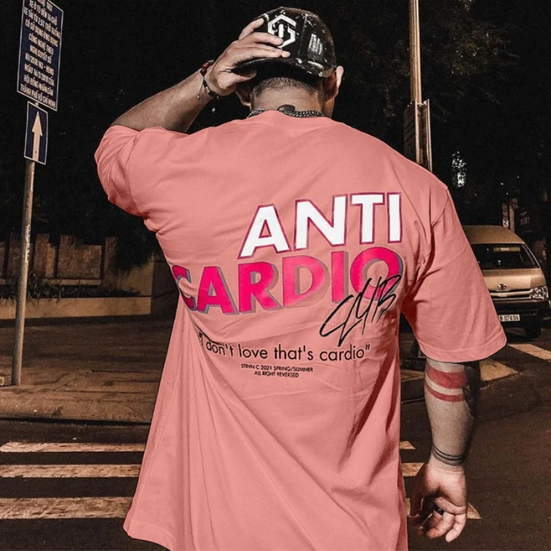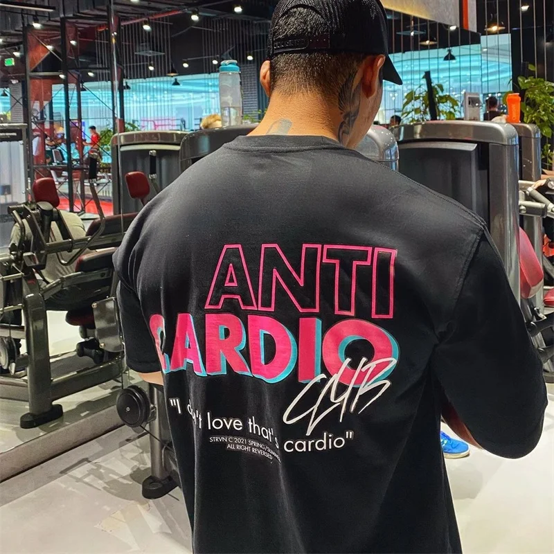 summer ANTI CARDIO Oversized sports t shirt short sleeves cotton t shirt Gym Fitness Male Training Workout Cotton Tees Tops