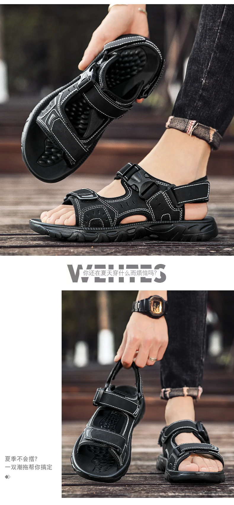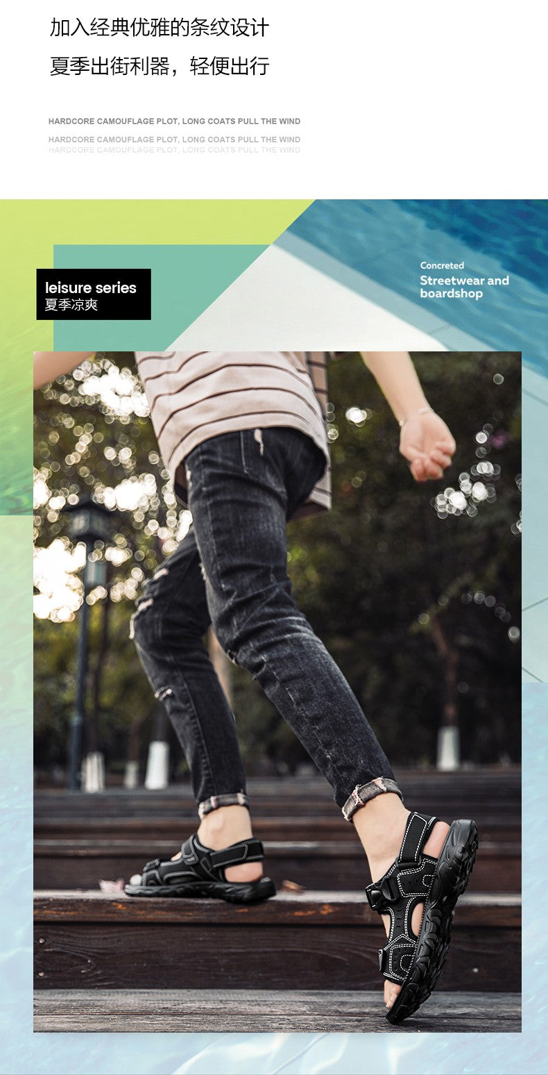 Summer Men Sandals PU Leather Lightweight Open Toe Flat Mens Casual Shoes Outdoor Walking Sandals for Men Beach Shoes Size 39-46