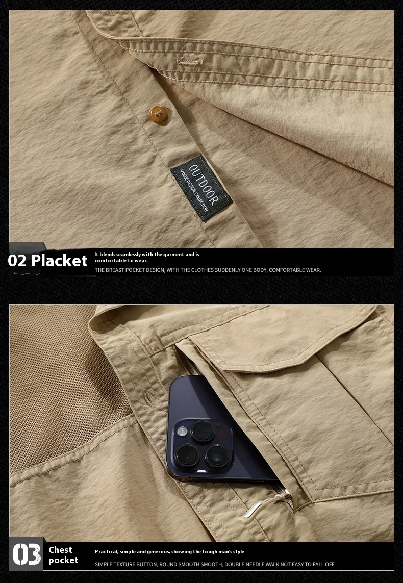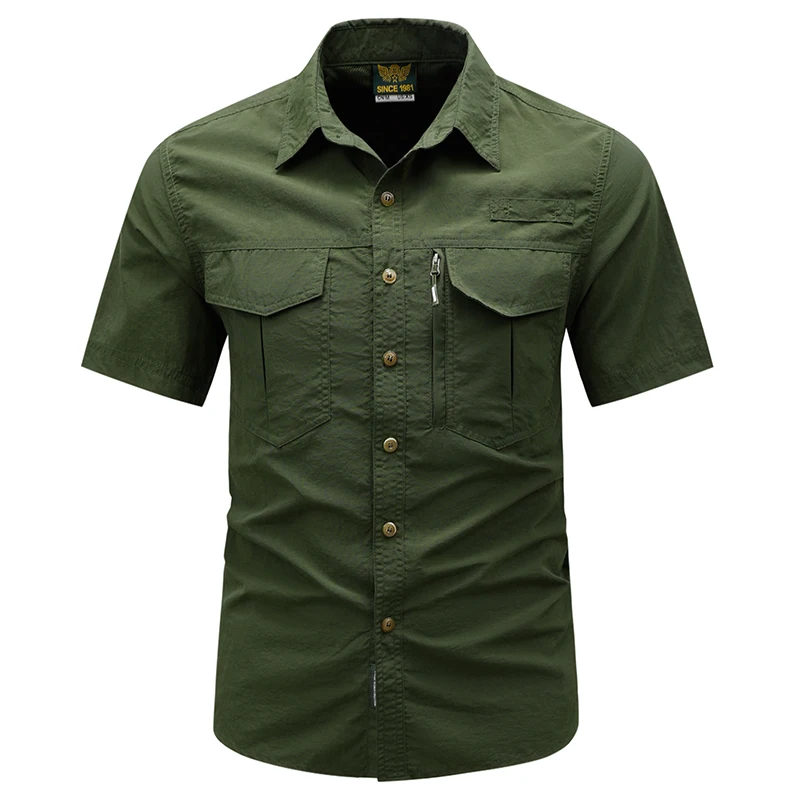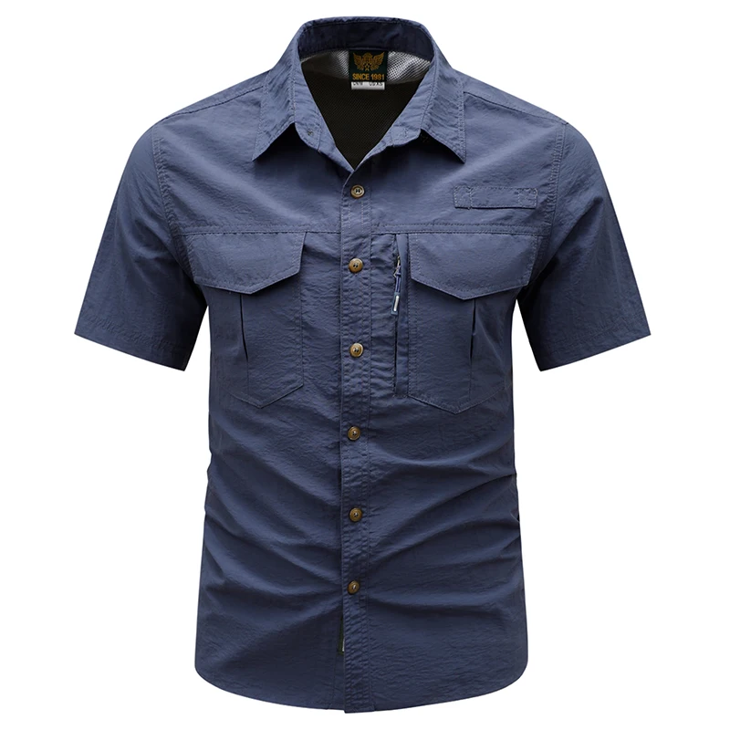 Summer Men Short Sleeve Cargo Breathable Shirt Man Casual Tactic Multi Pocket Shirts Men Outdoor Hike Safari Work Shirt Top Polo