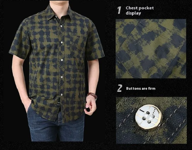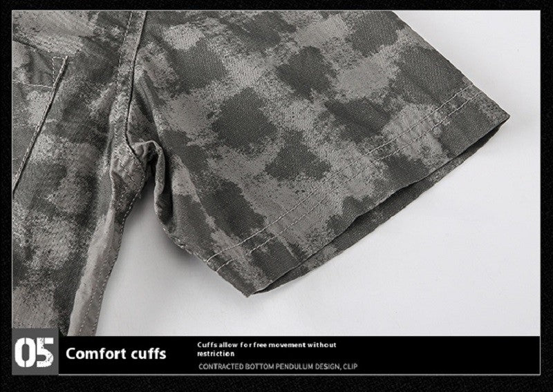 Summer Men Short Sleeve Cargo Breathable Shirt Men Casual Plaid Tactic Shirts Men Camouflage Outdoor Camp Hike Safari Work Shirt