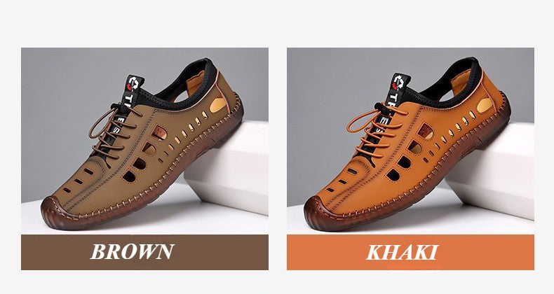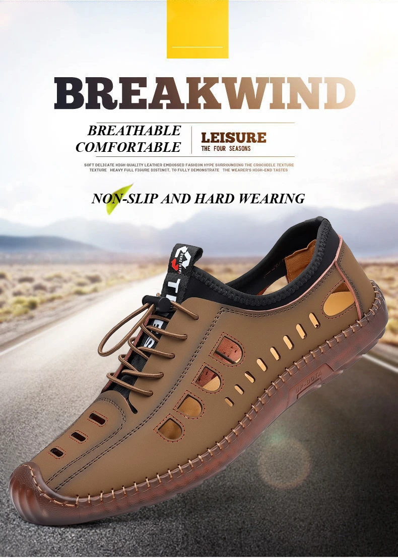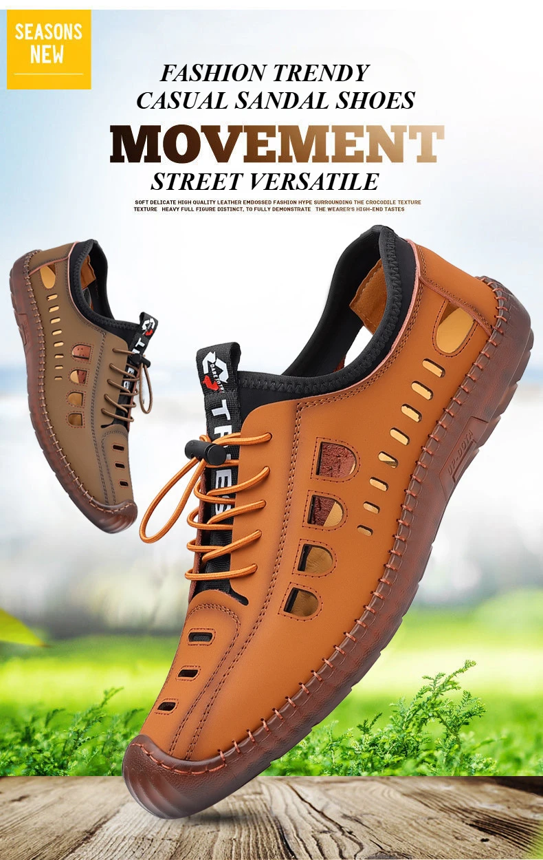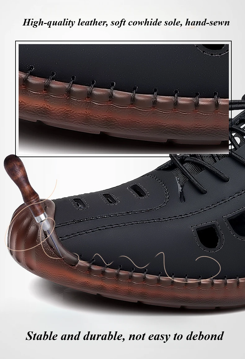 Summer Men's Leather Sandals Tendon Sole Slip on Flat Casual Sandals Outdoor Beach Sandal Shoes for Men Sandalias De Hombre 2025