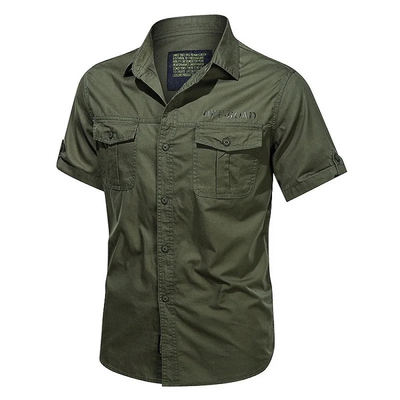 Military cargo shirt men's cotton wear-resistant loose short sleeved shirt: Cotton wear-resistant loose short sleeved outdoor