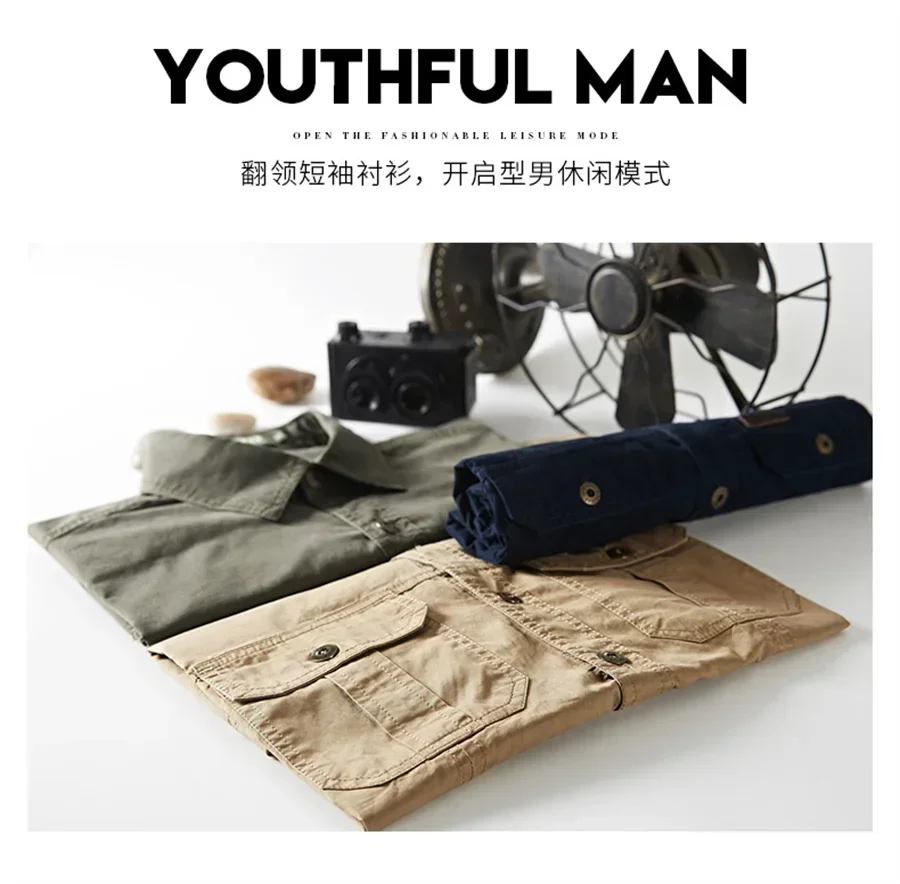 Summer Quick Dry Short Sleeve Mens Army Fan Tactical Shirts Male Solid Thin Lapel Cargo Shirt Tops Outdoor Hiking Military Shirt