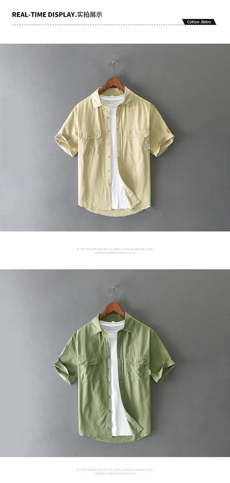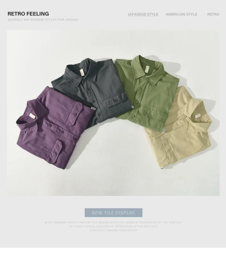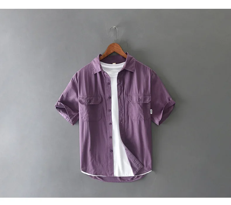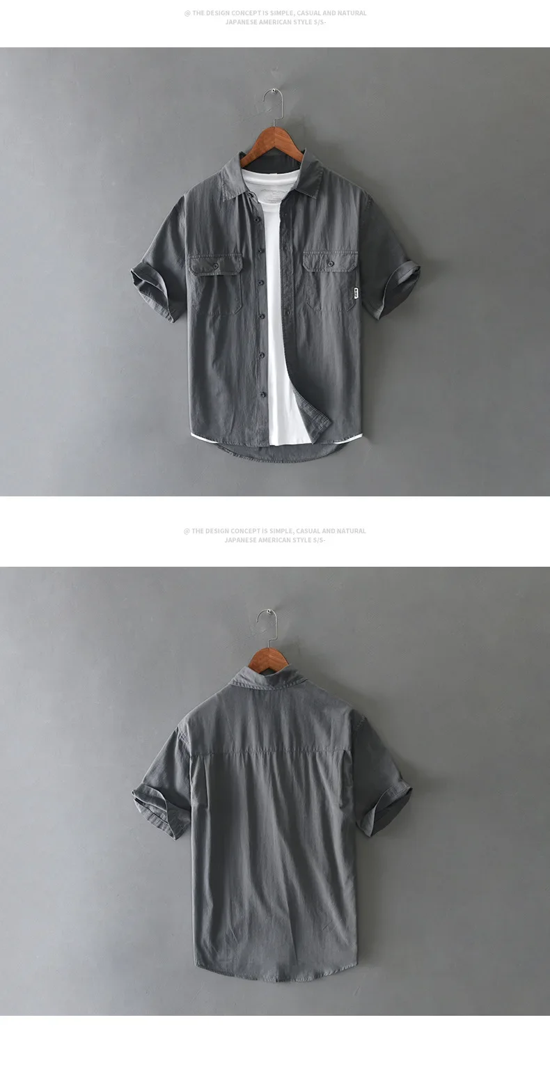 Summer Short Sleeve Cargo Shirt Men Streetwear Men Loose Shirts Casual Pure Cotton Double Pockets Khaki Shirt Fashion Clothing