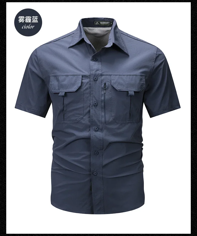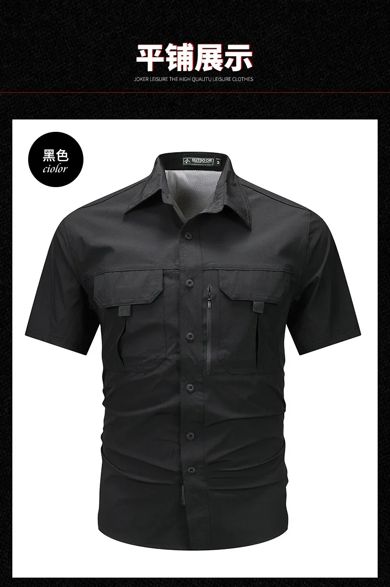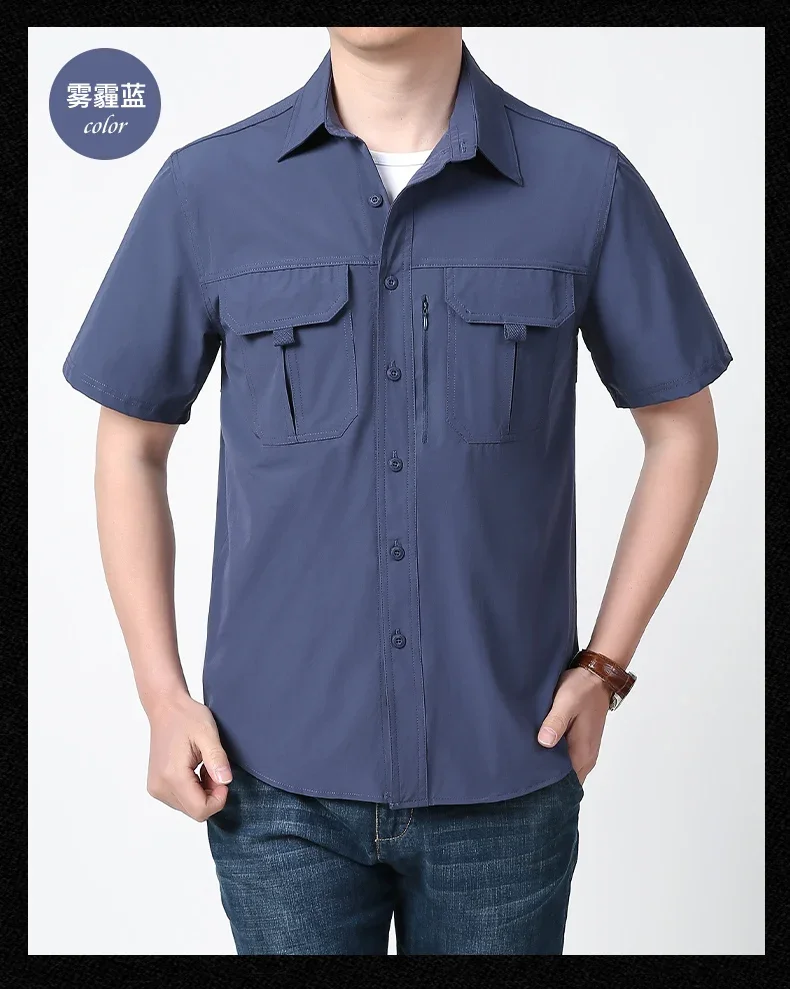 Summer Tactical Shirts Men Work Short Sleeve Shirt Outdoor Breathable Quick Dry Multi-pocket Cargo Camp Hike Short Sleeved Shirt
