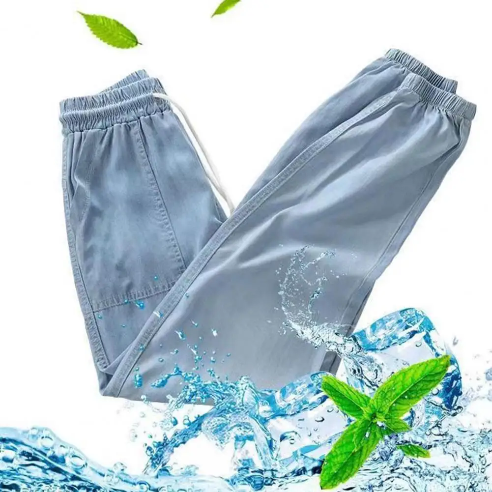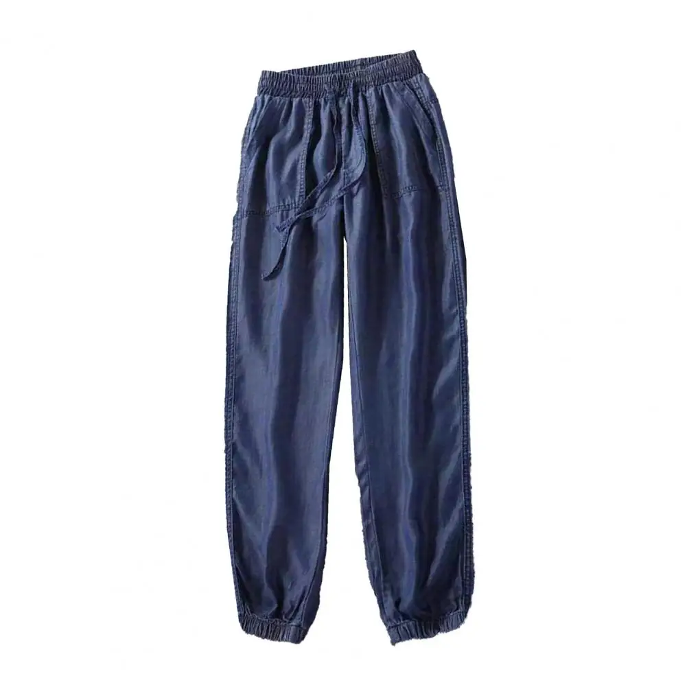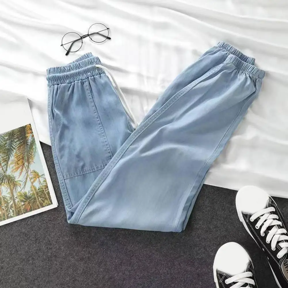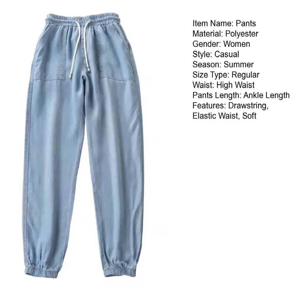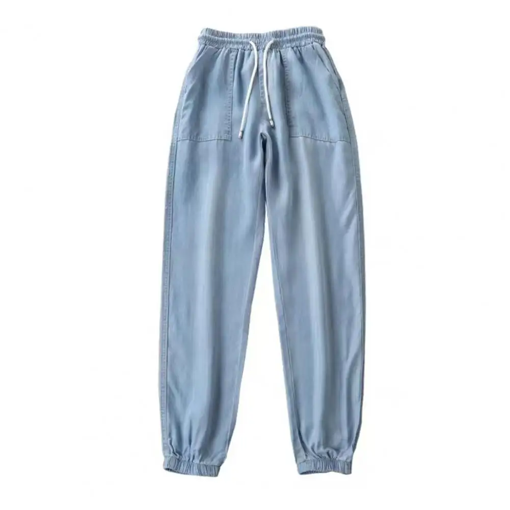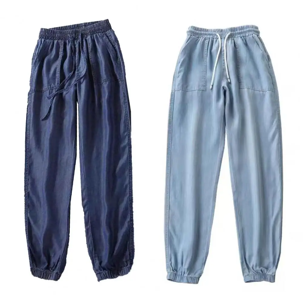 Summer Thin Ice Silk Jeans Women Elastic High Waist Drawstring Harem Pants Loose All-matched Beam Leg Nine Points Denim Pants