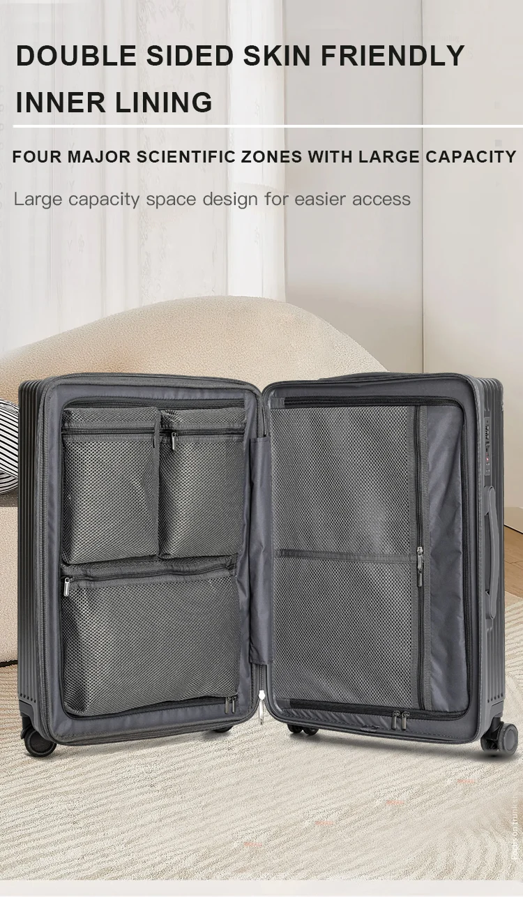 This suitcase has two zippers, and opening one of them can increase the capacity by 20%