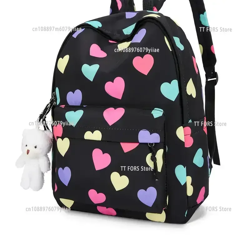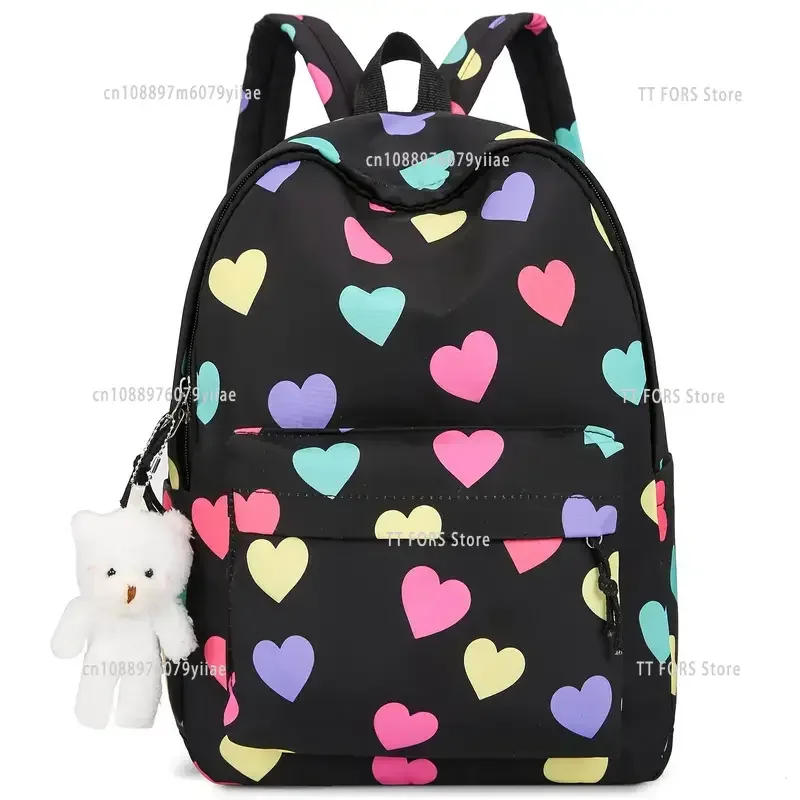 Sweet Canvas Love Children's Backpack Leisure Large Capacity Boys and Girls Student Schoolbag Birthday Holiday Gift