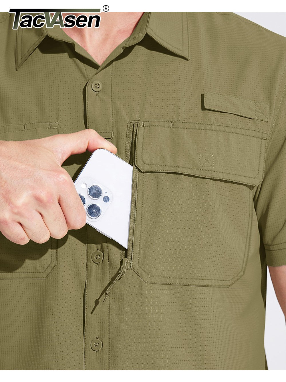 TACVASEN Short Sleeve Fishing Shirts Men's UPF 50+ Sun Protection Cargo Work Shirts Mesh Breathable Quick Dry Hiking Shirts Man