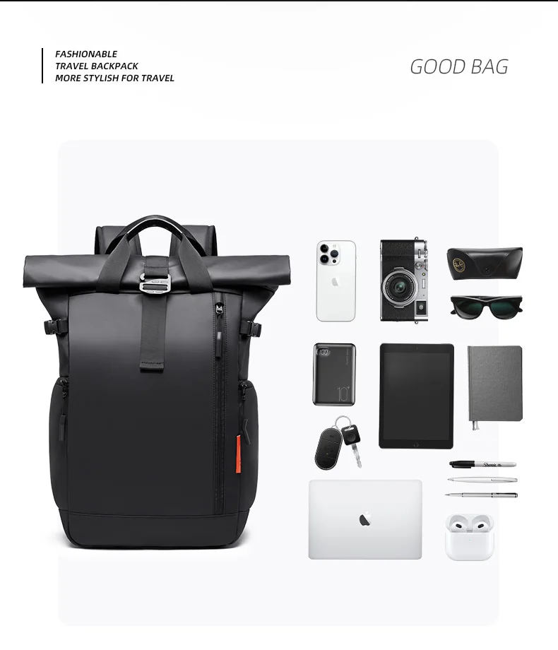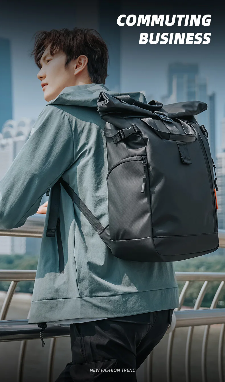 Men's Large Capacity Roll Top Backpack Multifunction College School Laptop Backpacks Men Business Travel Stylish Backpack