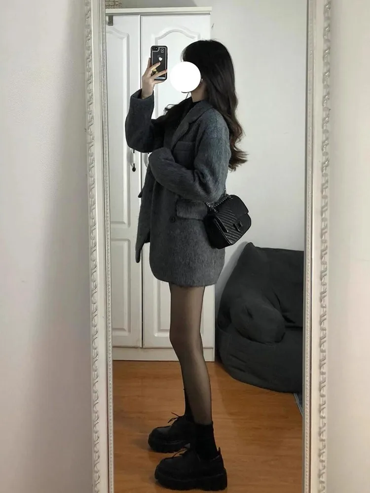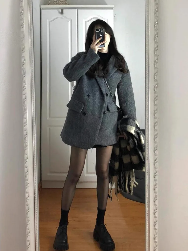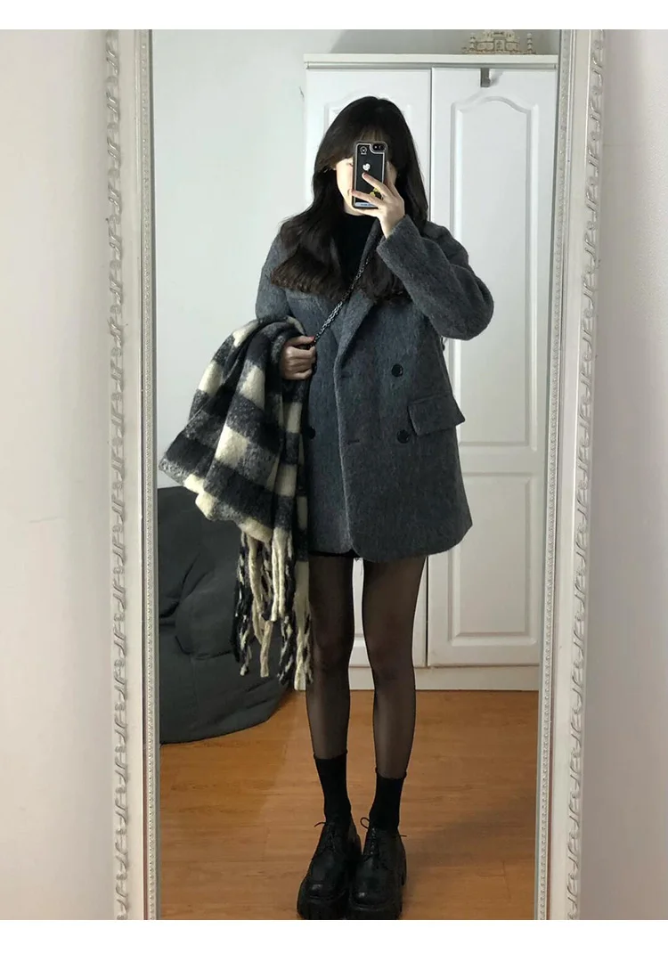 Temperament 2025 New Autumn Winter Women Woolen Suit Thick Coat Korean Style Wool Overcoat Female Office Lady Tops Female Jacket
