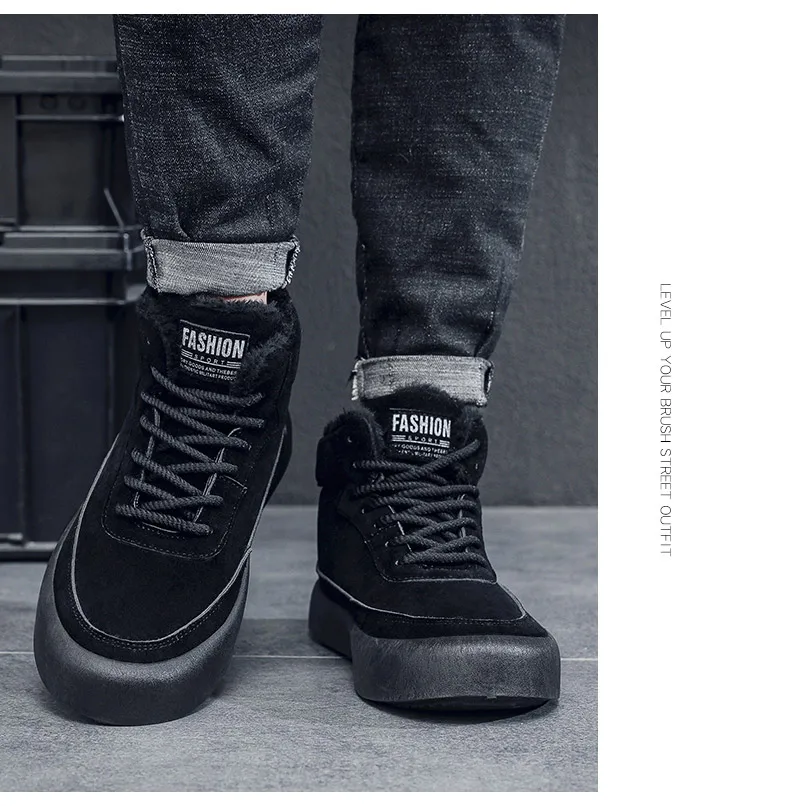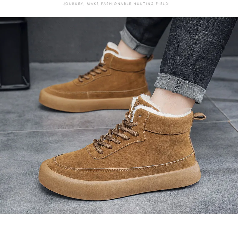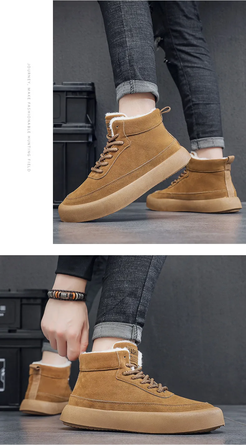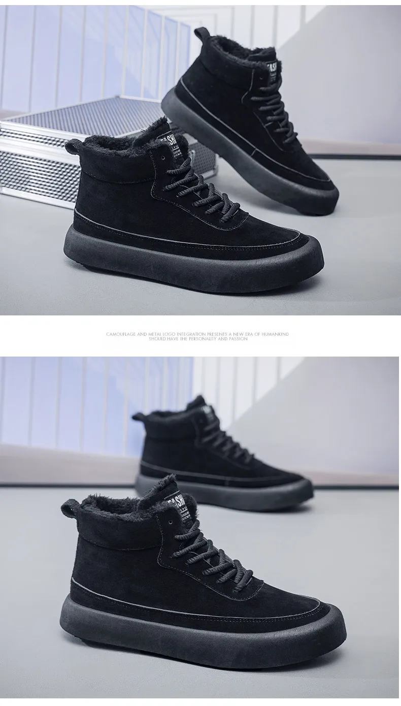 The 2025 new winter high-top plush thick men's snow boots are fashionable, casual and warm men's cotton shoes and boots
