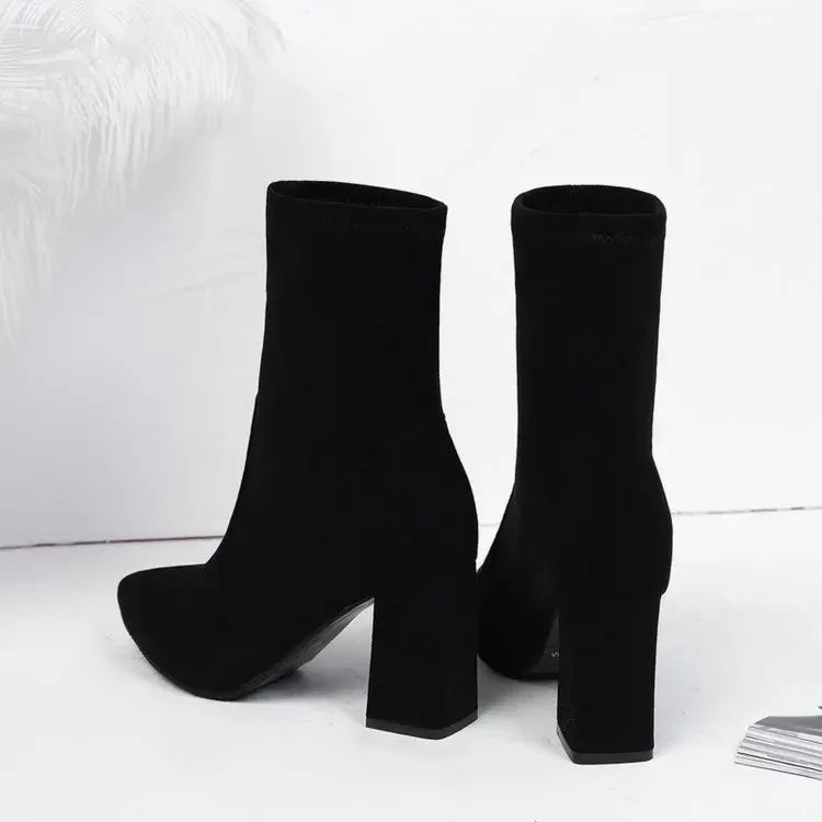Thick Heel Women Short Boots Fashion Slimming Ankle Booties classic Style Autumn Winter Female Pointed Toe Women Boots D64