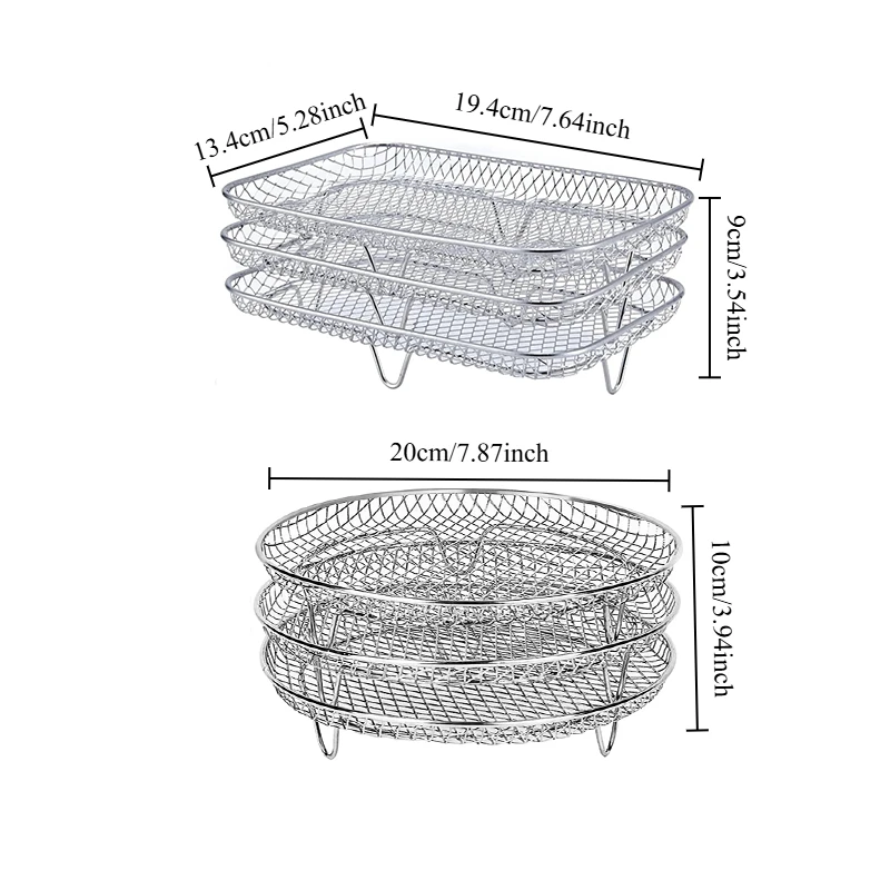 It has two specifications to choose from, which can adapt to different capacities and models of air fryers, meeting your diverse cooking needs. Whether it's used to grill fresh and juicy chicken wings, fragrant grilled meat, or make various grilled vegetables, it can be easily done. Moreover, it can be used for multiple purposes. In addition to being used in air fryers, it can also be paired with various kitchen appliances such as ovens and microwaves to provide more convenience for your cooking.