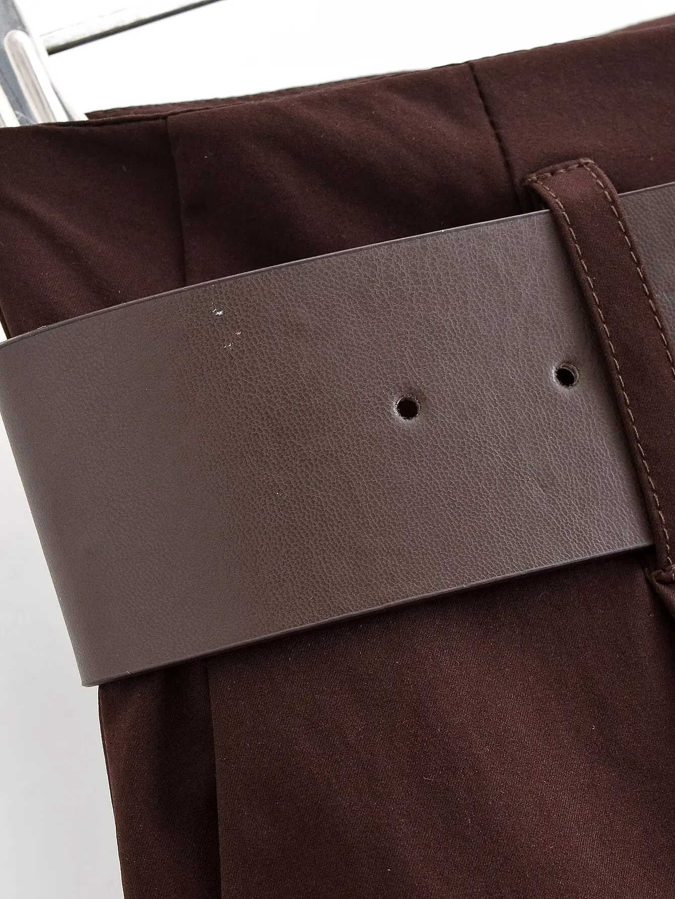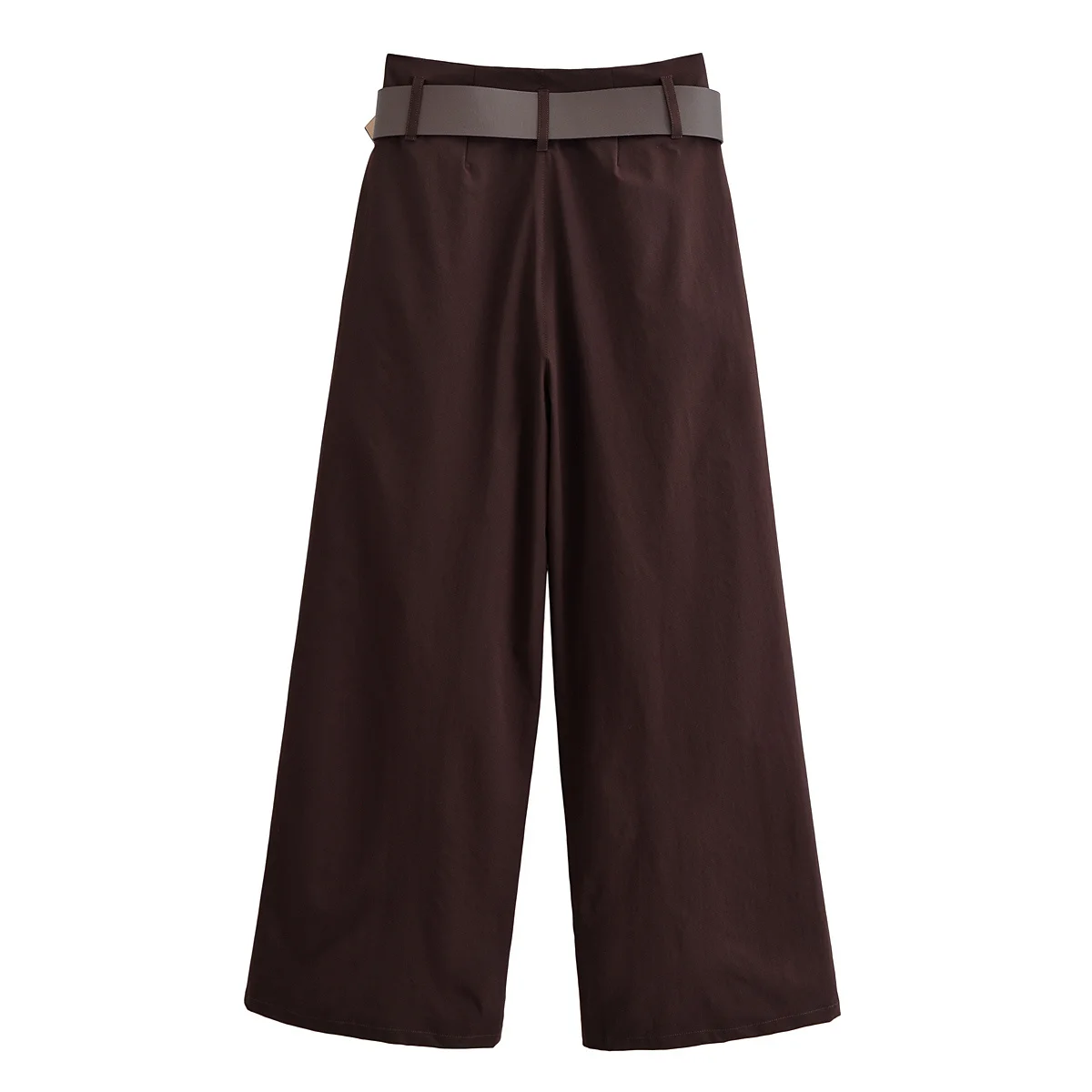 Tidalyf 2025 Women Vintage Brown Wide Leg Pants with Metal Belt High Waist Casual Trousers