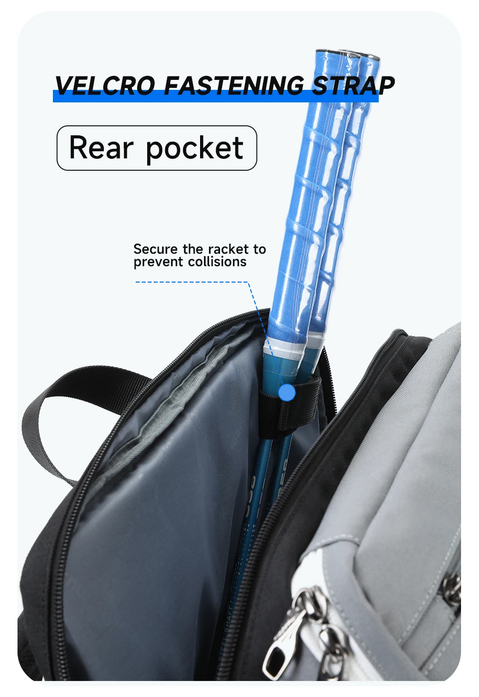 4. Other convenient details design, such as the strap that fixes the badminton club, reinforced shoulder strap and handle, luggage strap, breathable shoulder strap etc.