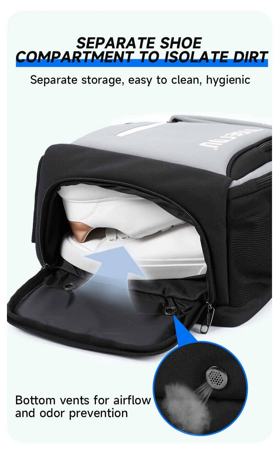 3. Unimaginable large capacity, with various functional pockets-- large capacity main compartment bag, breathable shoe pocket, thermal insulation bag, side bag, hidden back pocket, top pocket, etc.