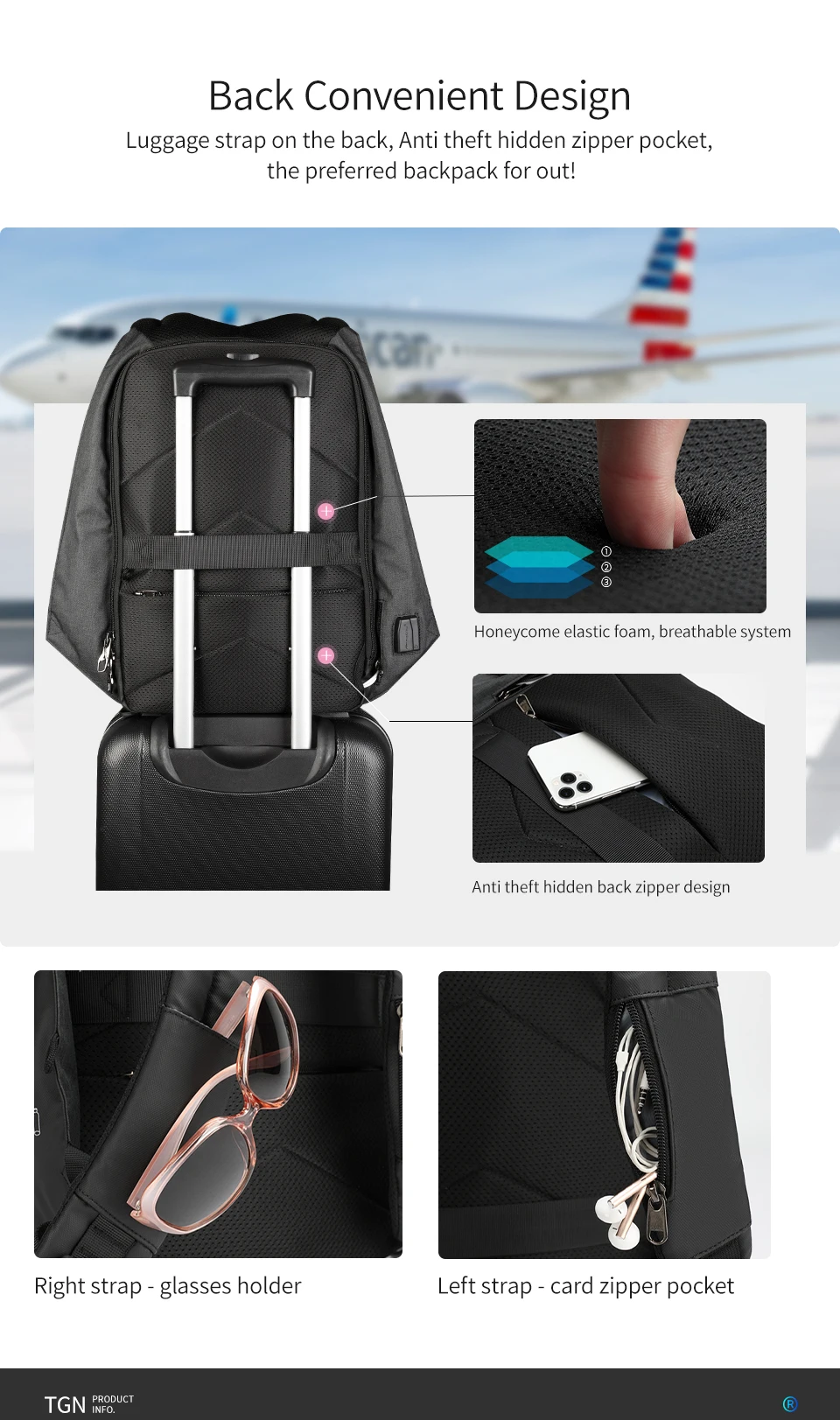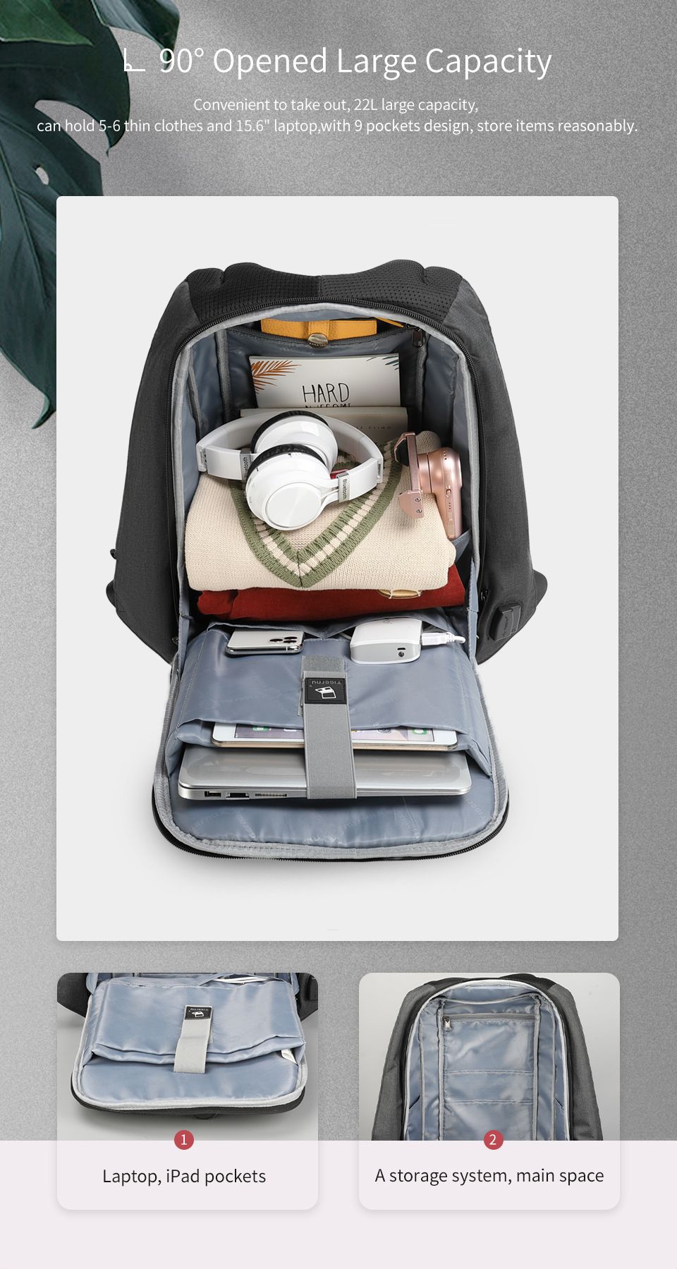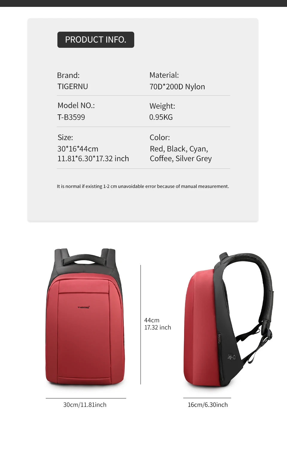 Backpack siez: L30cm*W12cm*H44cm/15.6"